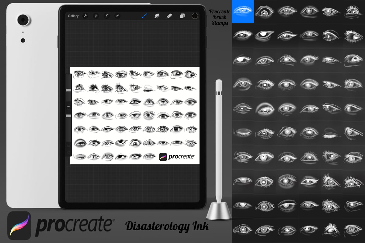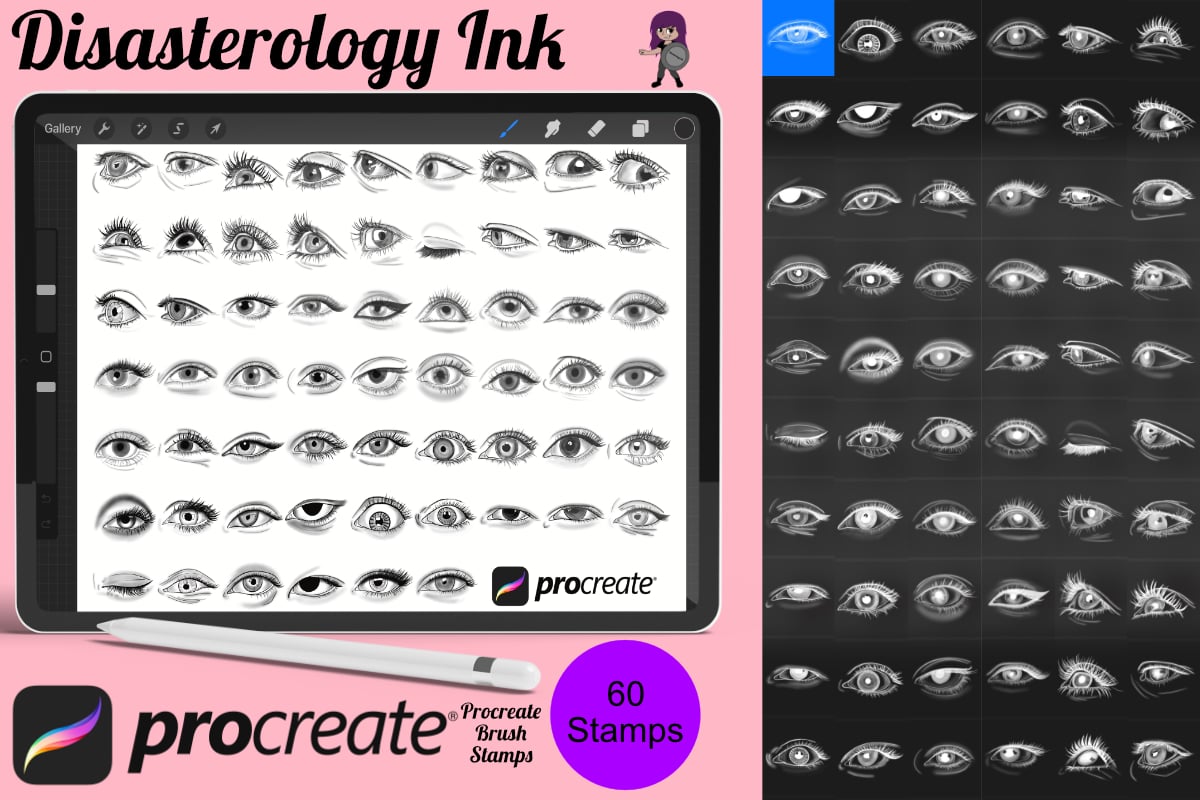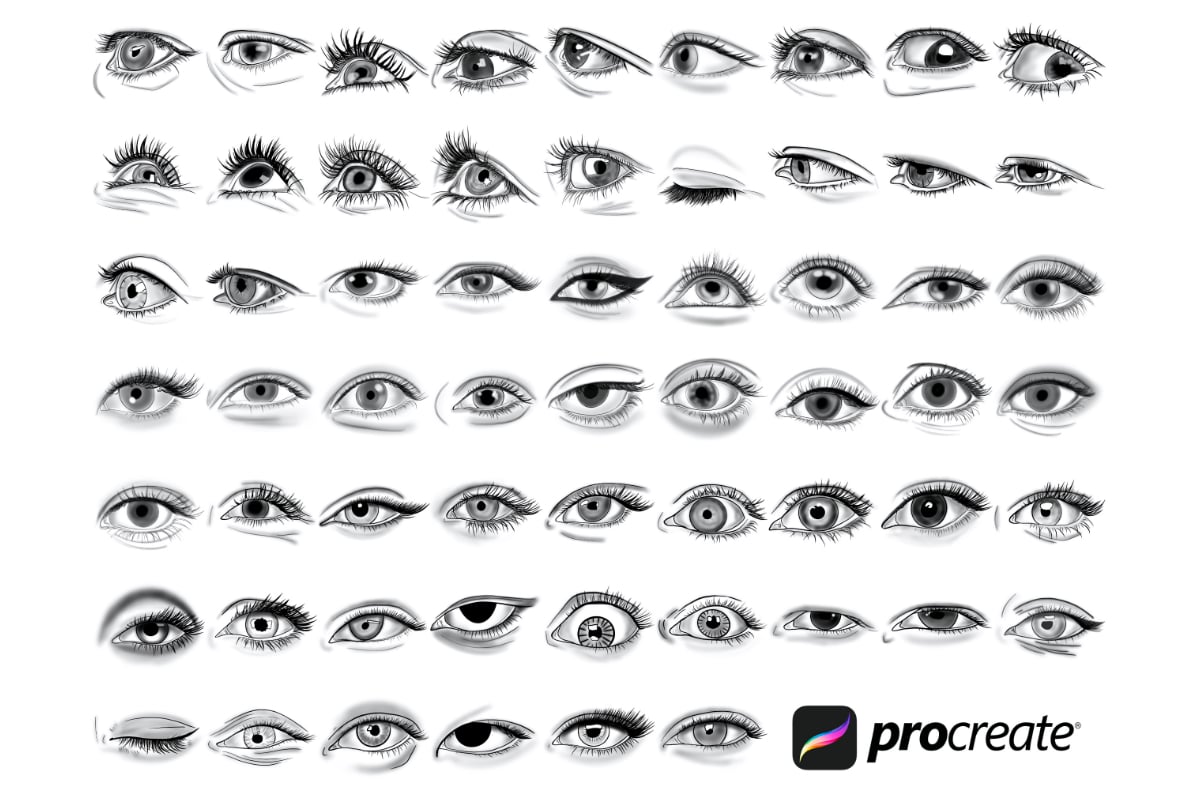 Facial Eyes Set 2 Procreate Brush Stamps, 60 Eyes