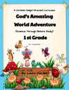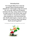 Join the fun as your 1st grader explores God’s big world! From tiny seeds to tall trees, noisy animals to twinkling stars, this 60-day workbook is packed with simple questions and drawing activities. With crayons and curiosity, kids discover plants, animals, the sky, rocks, water, and how to care for it all—while seeing God’s love in every little thing. Perfect for little hands and big wonders!