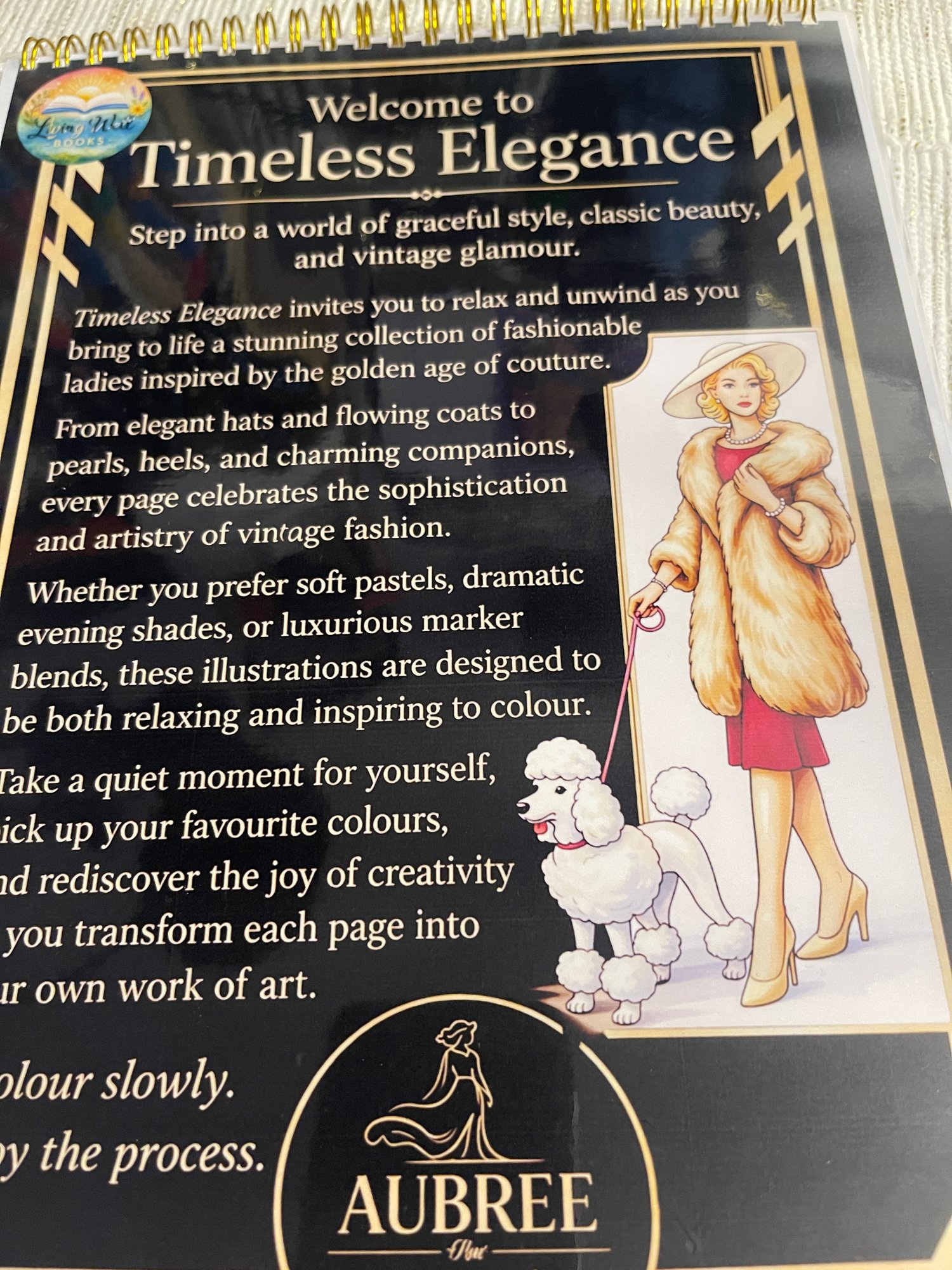 Timeless Elegance- A Vintage Fashion Colouring Book by AUBREE. A4 card stock spiral bound