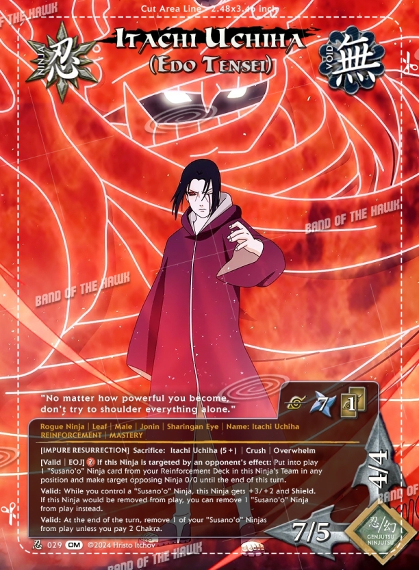 n029 - Itachi Uchiha (Edo Tensei) Promo Ninja card from our Obito & Madara card set for Naruto CCG.