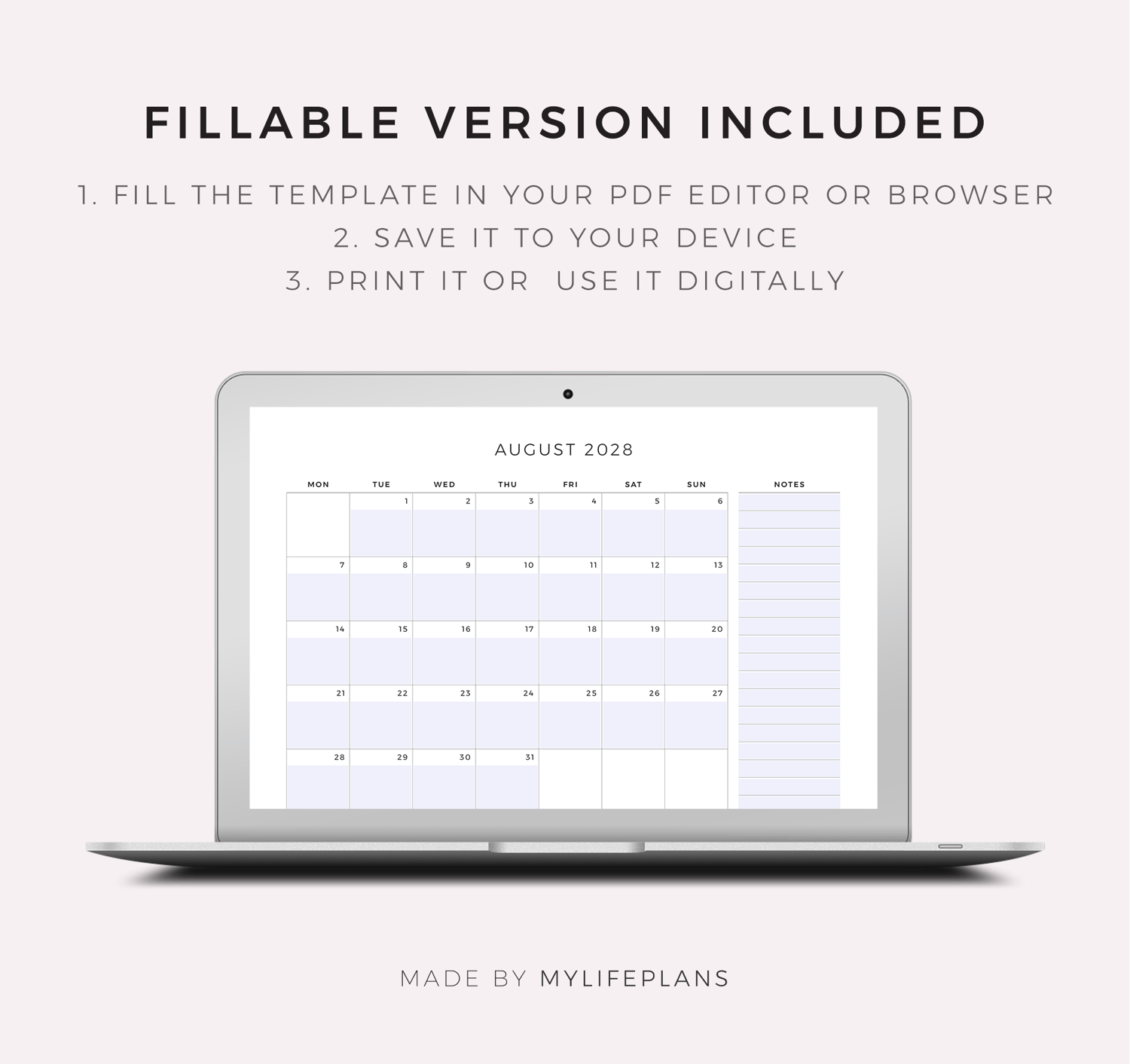 This is a printable 2028 monthly planner — just download, print, and start using it right away.