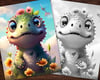 Baby Flower Dinosaur #1 Fantasy Coloring Page, Adults + kids- Instant Download Grayscale Coloring Page, Printable PDF, Dragons coloring