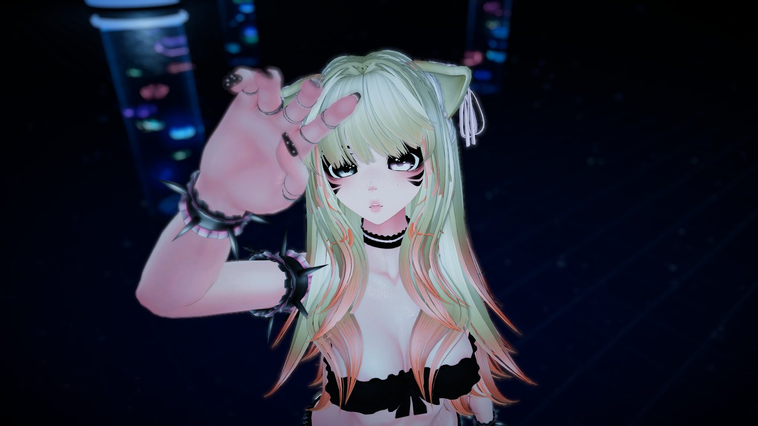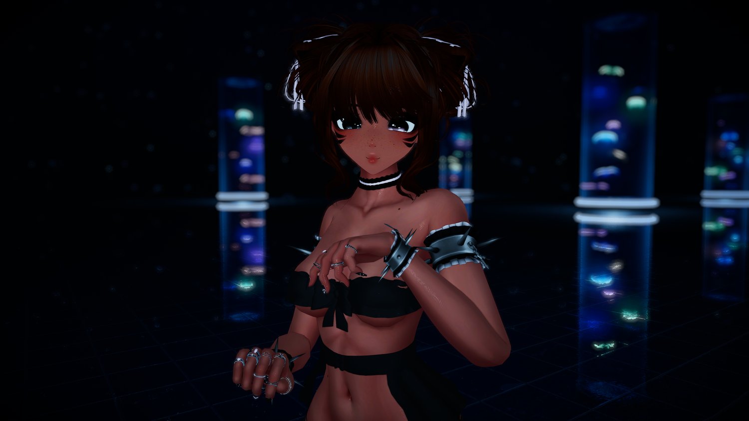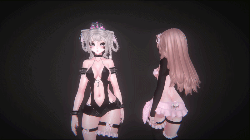 wings, arm & wrist cuffs, glasses, kitty ears, leg garters, necklace, choker, tiara, hip raccoon tail, nails, rings