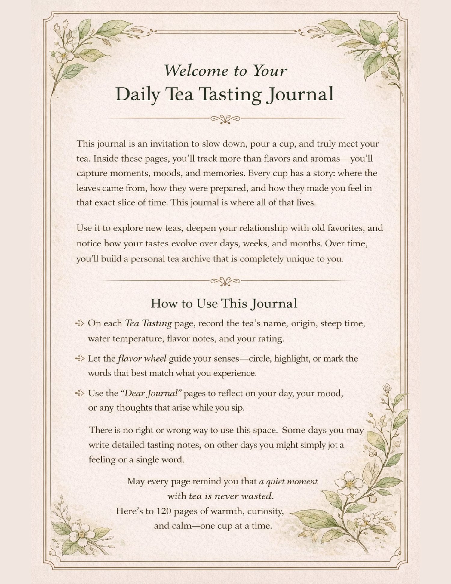 This journal is an invitation to slow down, pour a cup, and truly meet your tea.