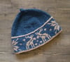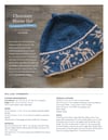 Ann Budd, chef-extraordinaire, whipped up the recipe for this whimsical hat while binge-watching baking shows. Layers of warm wool are folded around the ears and stranded colourwork decorates the brim with a kiss of moose and a sprinkle of traditional snowflakes. Add a swirl of i-cord to the top for the perfect finish. This hat can be served in three sizes— perfect for a family setting.