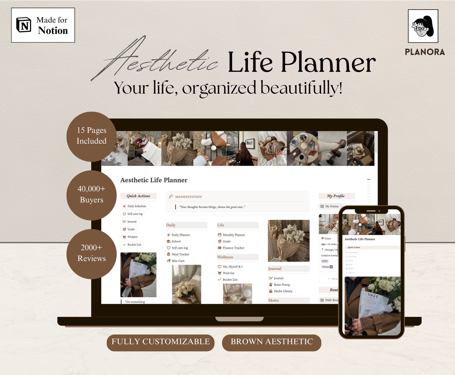 An all-in-one Aesthetic Life Planner designed to help you organize your days, nurture your wellness, and align your goals—beautifully and intentionally. A calm, neutral workspace for planning your life with clarity and purpose ✨