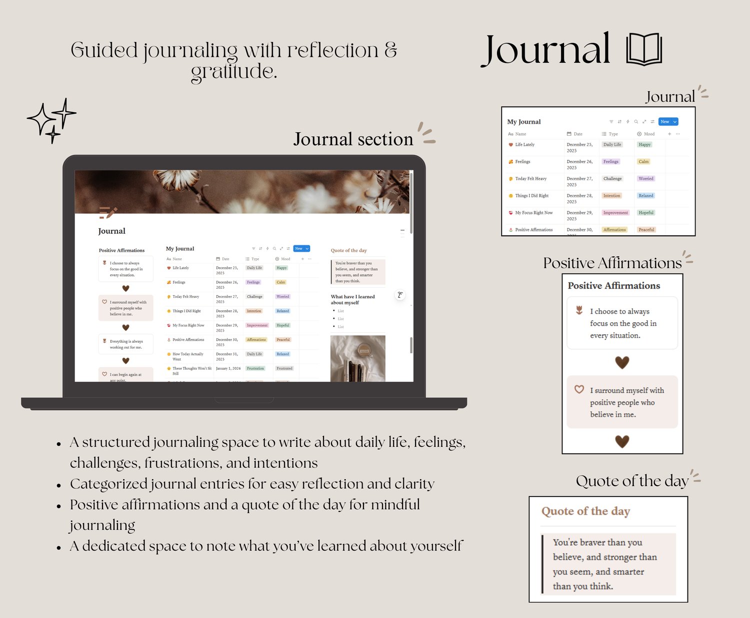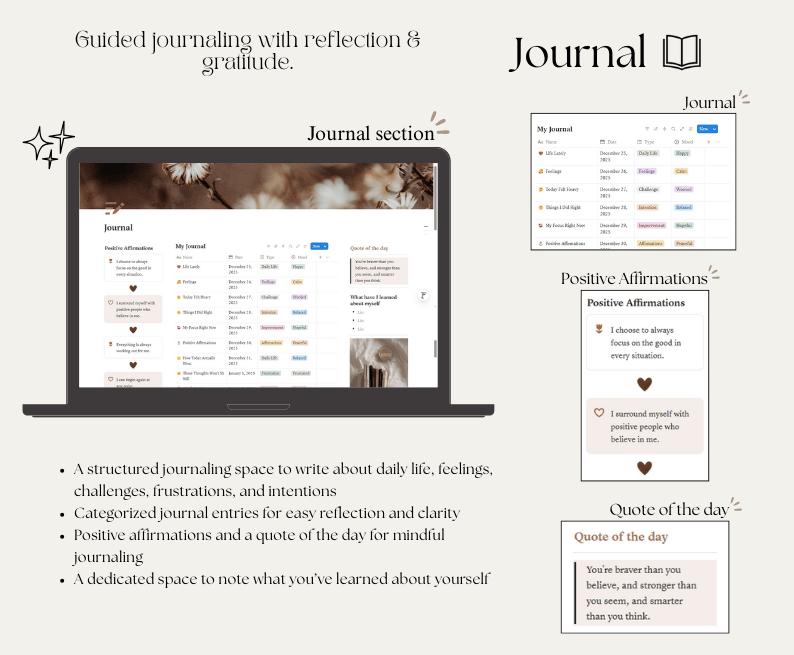 - Motivational quotes and affirmations to support intentional living.