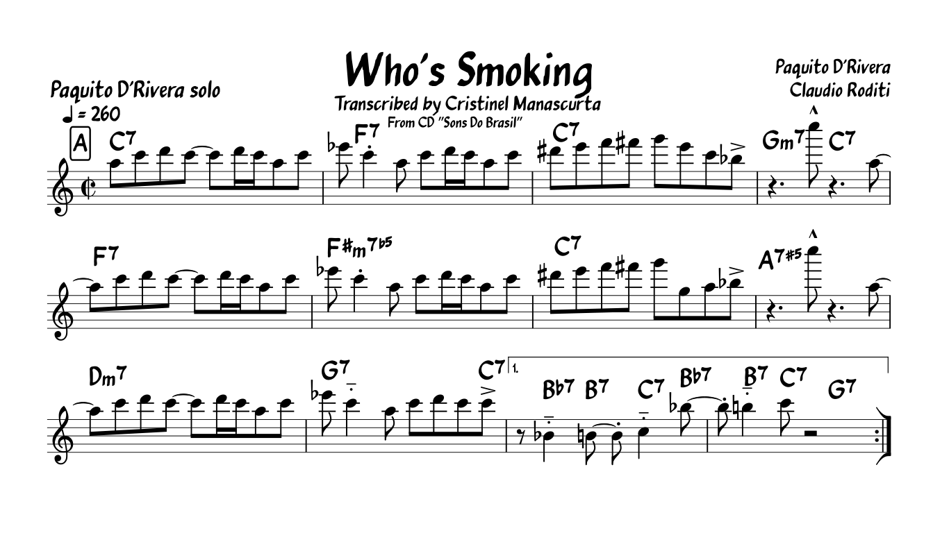Paquito D'Rivera - Who's Smoking, tenor sax (take 1)