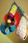 lacy (or not so lacy) scarf or cowl with several options, constructed in panels worked in opposite directions