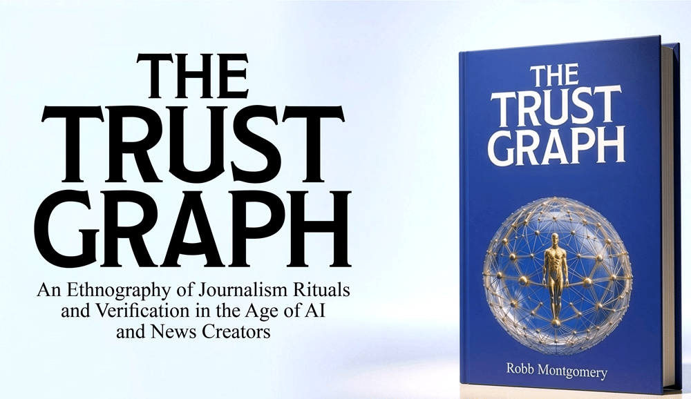 The Trust Graph: An Ethnography of Journalism Rituals and Verification in the Age of AI and News Creators delivers the definitive survival architecture for the post-institutional media era. Operating as an embedded witness over 19 years, visual media anthropologist Robb Montgomery presents a 40,000-word longitudinal ethnography documenting the transition from legacy gatekeeping to a decentralized digital landscape. Built upon 500 hours of digital archaeology and 39 exclusive video interviews with global media leaders, this text provides an unassailable empirical foundation to help students understand the collapse of twentieth-century media.