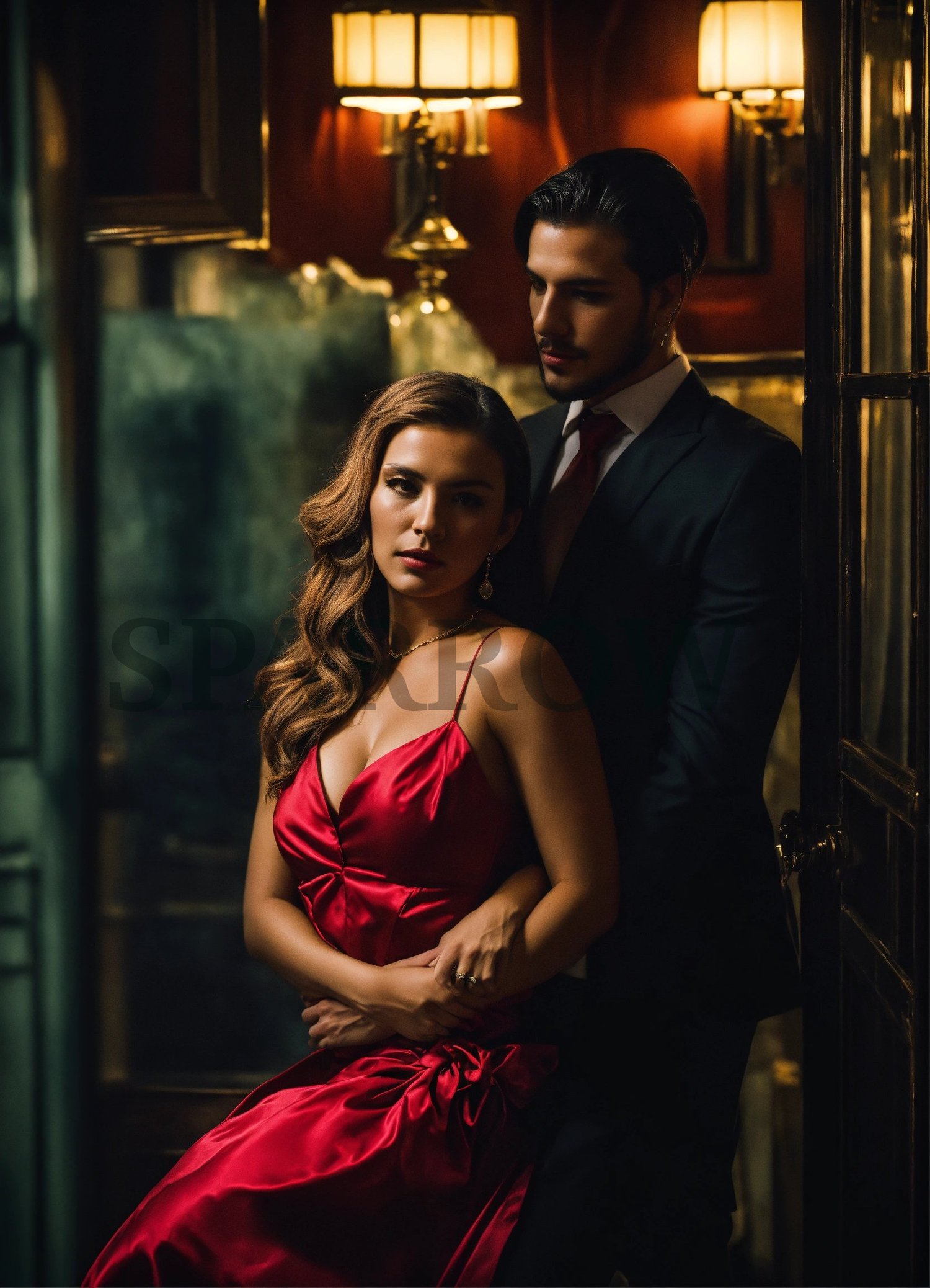 Shadowy cityscape, towering skyscrapers, dimly lit alleys, glow of neon signs, danger, passion, forbidden love, organized crime, sleek black cars, cigars, hidden weaponry, mystery, seductive couple, glamorous attire, intense gazes, secretive embraces, allure, swirling smoke, dark suits, ornate masks, vintage typewriters, flickering candlelight, complex relationships, tension, loyalty, desire, sultry, dangerous world, mafia romance, blood-red roses, silk ties, leather gloves, brass knuckles, shattered glass, playing cards, poker chips, gold chains, diamond-studded accessories, fedora hats, red lipstick stains, old-fashioned revolvers, secret meetings, handwritten notes, velvet ropes, dimly lit speakeasies, champagne flutes, engraved cufflinks, feathered quills, vintage photographs, wisps of gun smoke, double-crosses, silk scarves, brass light fixtures,star-crossed lovers, magical connections, love in the air. Romantic scene, Love concept, Storytelling, Digital art, AI, Creative design, Surreal atmosphere, Dreamy backdrop, Magical elements, Beautiful couple, Artistic composition, Commercial use, Atmospheric lighting, Mystical setting, Relationship concept, Emotive characters, Fictional love, Editorial use, Advertising, Marketing, Social media, Website design, Blog post, Article illustration, Book cover, Magazine layout, Poster design, Brochure, Presentation, E-book, Print material, Digital publication, Educational materials, Background image, Wallpaper, Conceptual art, Romantic moonlit scene, Enchanted forest setting, Moonlit meadow, Silhouetted trees, Nighttime romance, connection imagery, Romantic, Moonlit path, young adult romance, YA, serialized online fiction cover image, Radish, Dreame, GoodNovel, iReader, Vella, SWAG, book, author, writer, blogger, creator