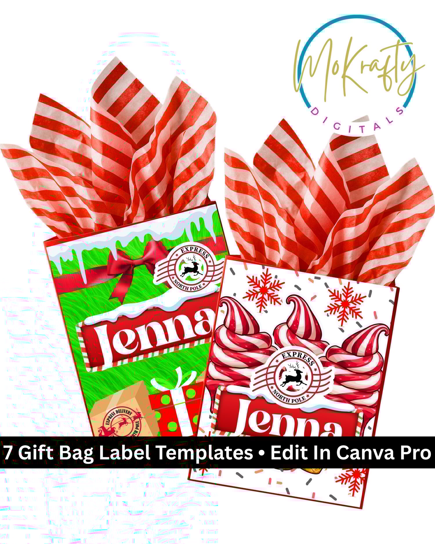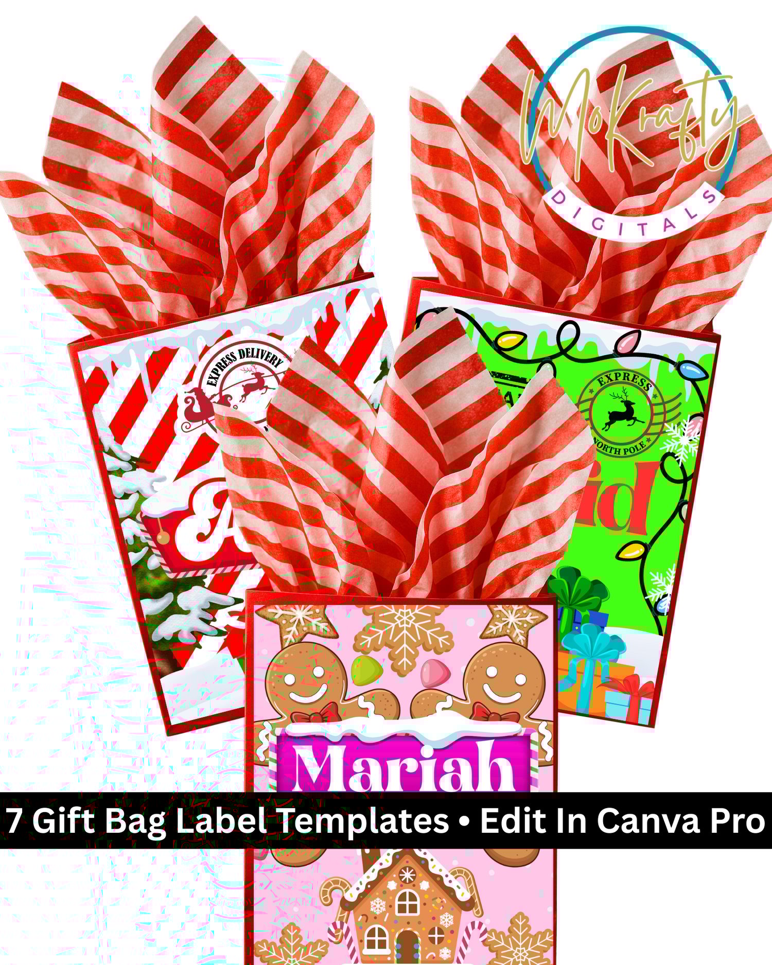 Make your holiday gifting unforgettable with these 7 Editable Christmas Gift Bag Label Templates, designed for fast and easy customization in Canva! Perfect for kids, teachers, coworkers, Christmas parties, small business packaging, vendor booths, and personalized holiday gifts.