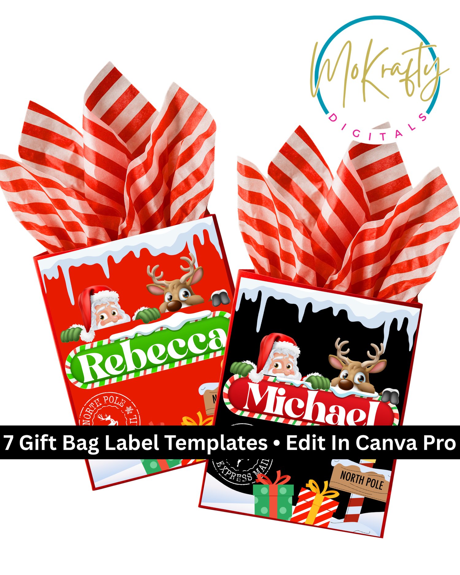 Christmas Gift Bag Label Templates | 7 Editable Canva Designs
