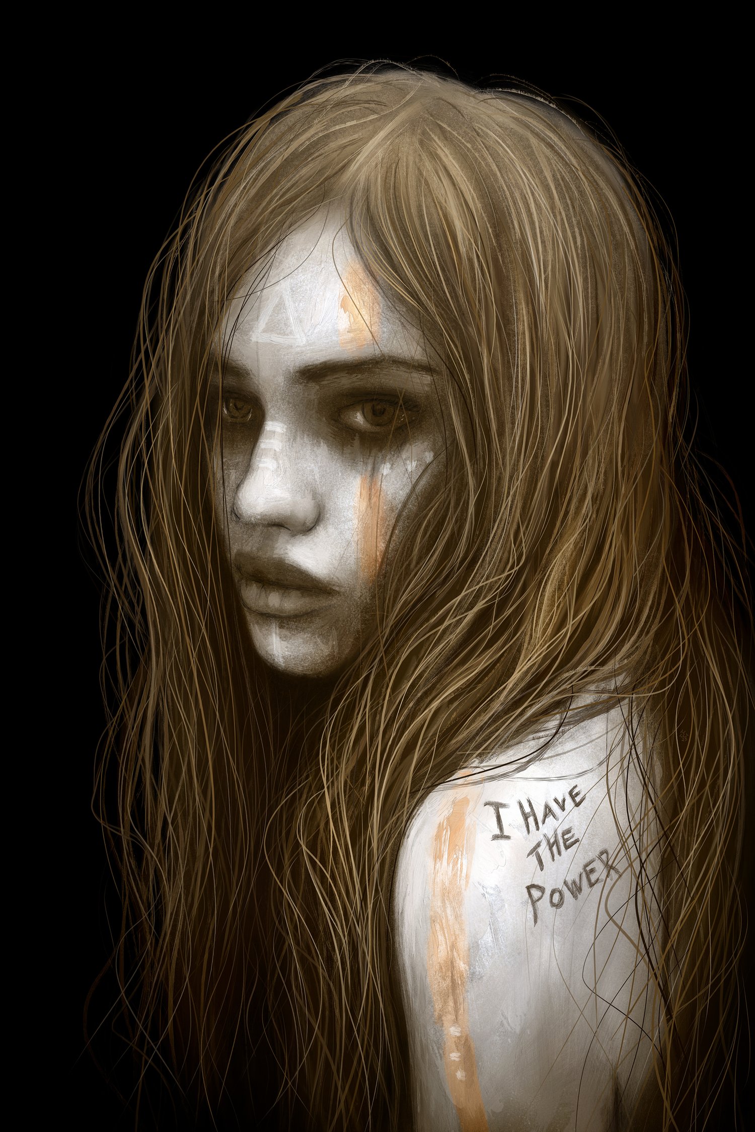 Full resolution digital painting image download of a sepia colored portrait by Justin Gedak.