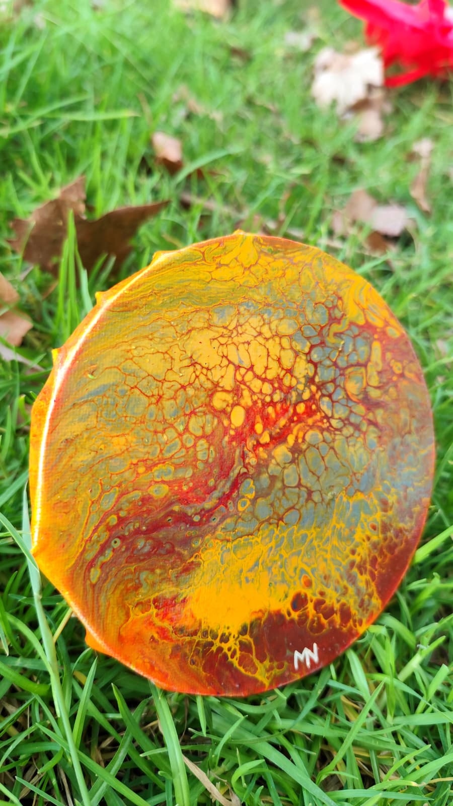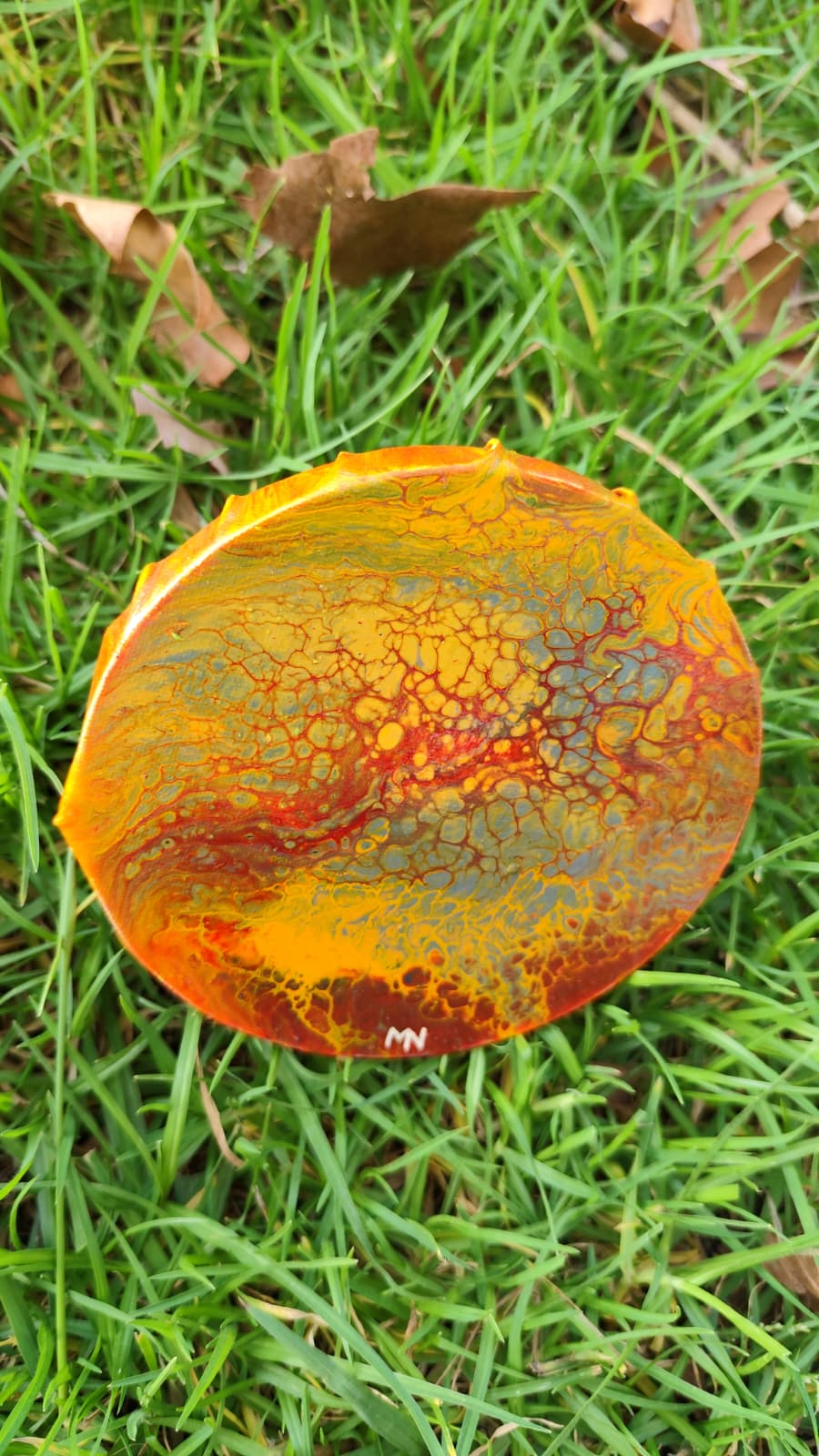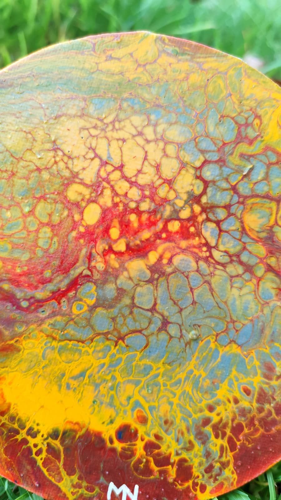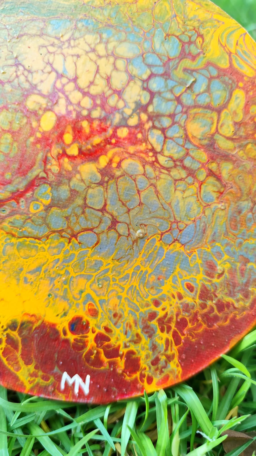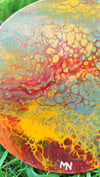 Las texturas fluidas y los contrastes intensos generan una sensación de movimiento, como si el propio calor siguiera vivo en la superficie. Es una obra con carácter, que refleja resistencia, transformación y la belleza que puede surgir incluso en los entornos más extremos.