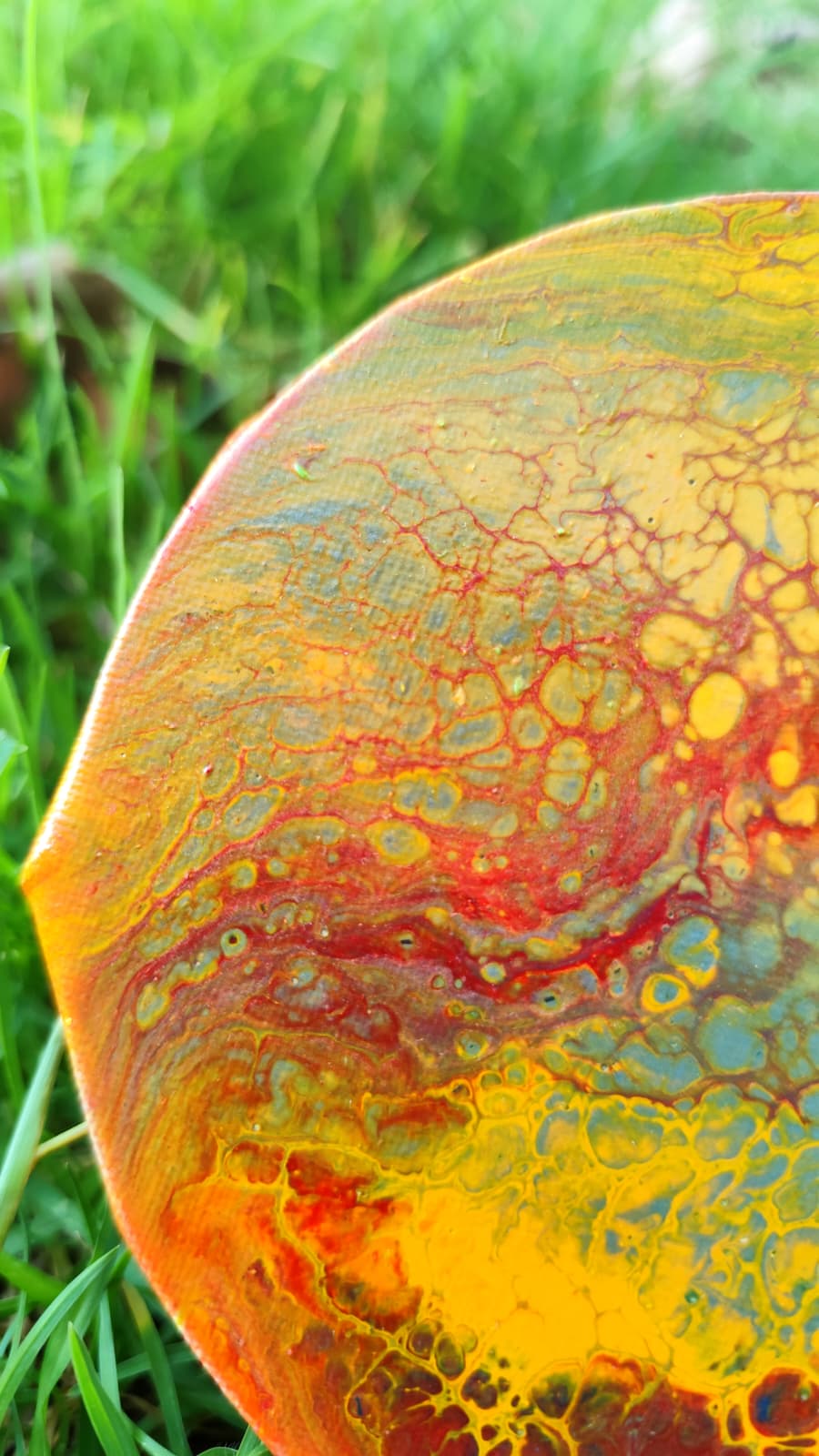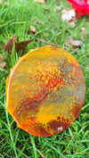 Esta pieza transmite la fuerza de una tierra marcada por la ausencia de agua. Los tonos amarillos, naranjas y rojizos se entrelazan creando un efecto orgánico que recuerda a suelos agrietados y paisajes castigados por el calor.
