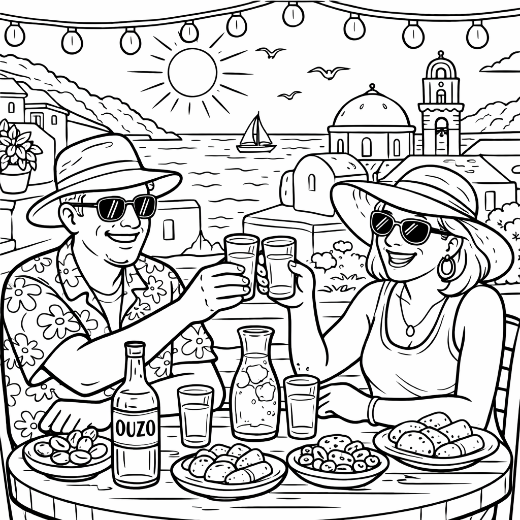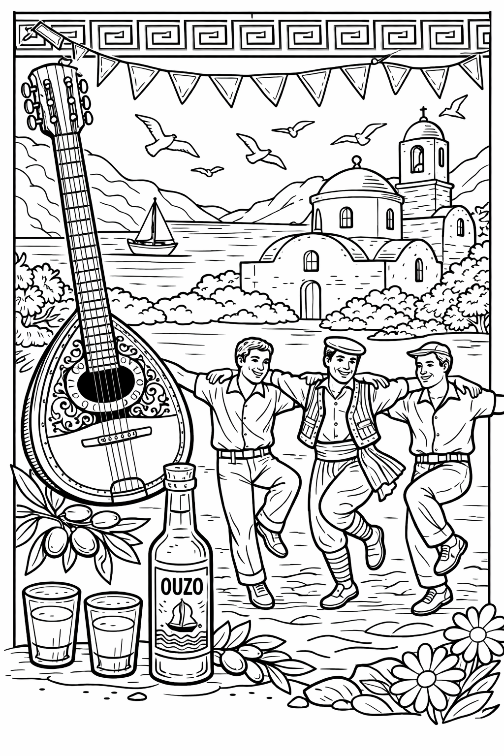 Ouzo and syrtaki, 60 designs, coloring ebook, digital printable product, instantly download