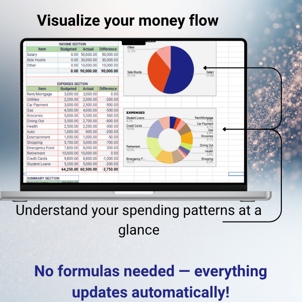 No complex setup. No formulas. No clutter. Just a simple, visual way to track your income, expenses, and savings & Debts — all in one place.