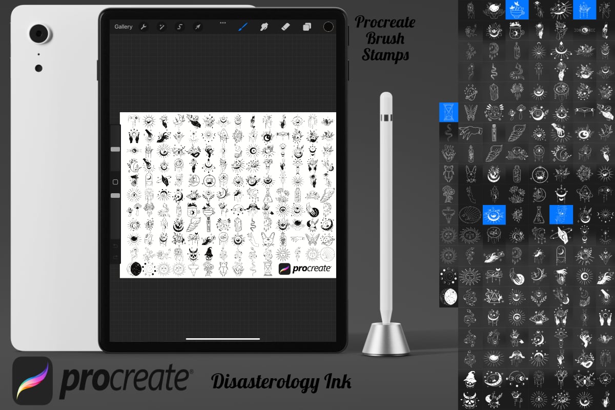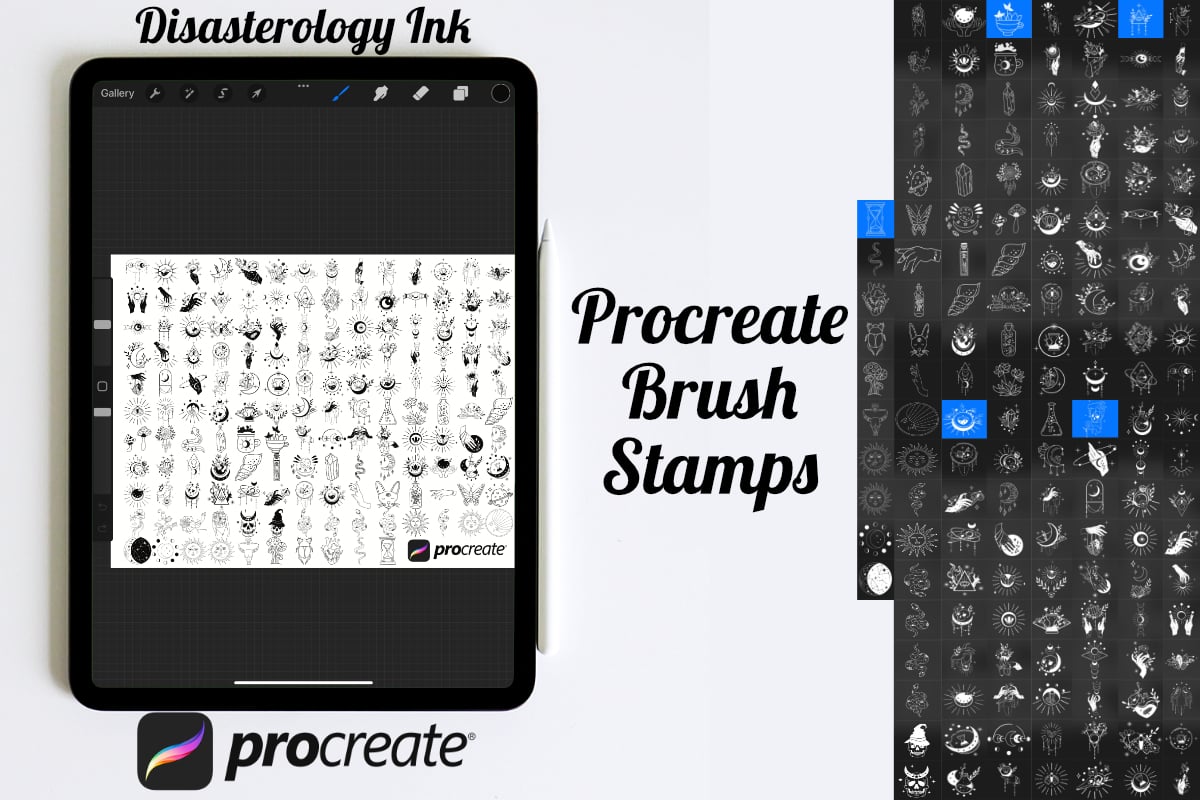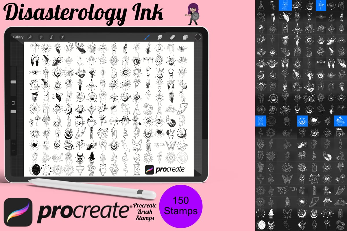 Pack of 150 Tattoo Flash Procreate Stamp Brushes! These flash tattoo stamps are perfect for making illustration projects or any procreate purpose. You can use these in any colour or opacity and they can be resized to best fit your art. You need Procreate 5.0.8 or 5X, an iPad, and an Apple Pencil. Also, these stamp brushes are not pressure sensitive and can be used with third party stylus, Apple Pencil or even your finger. You can change the colour, size and opacity of these stamps.