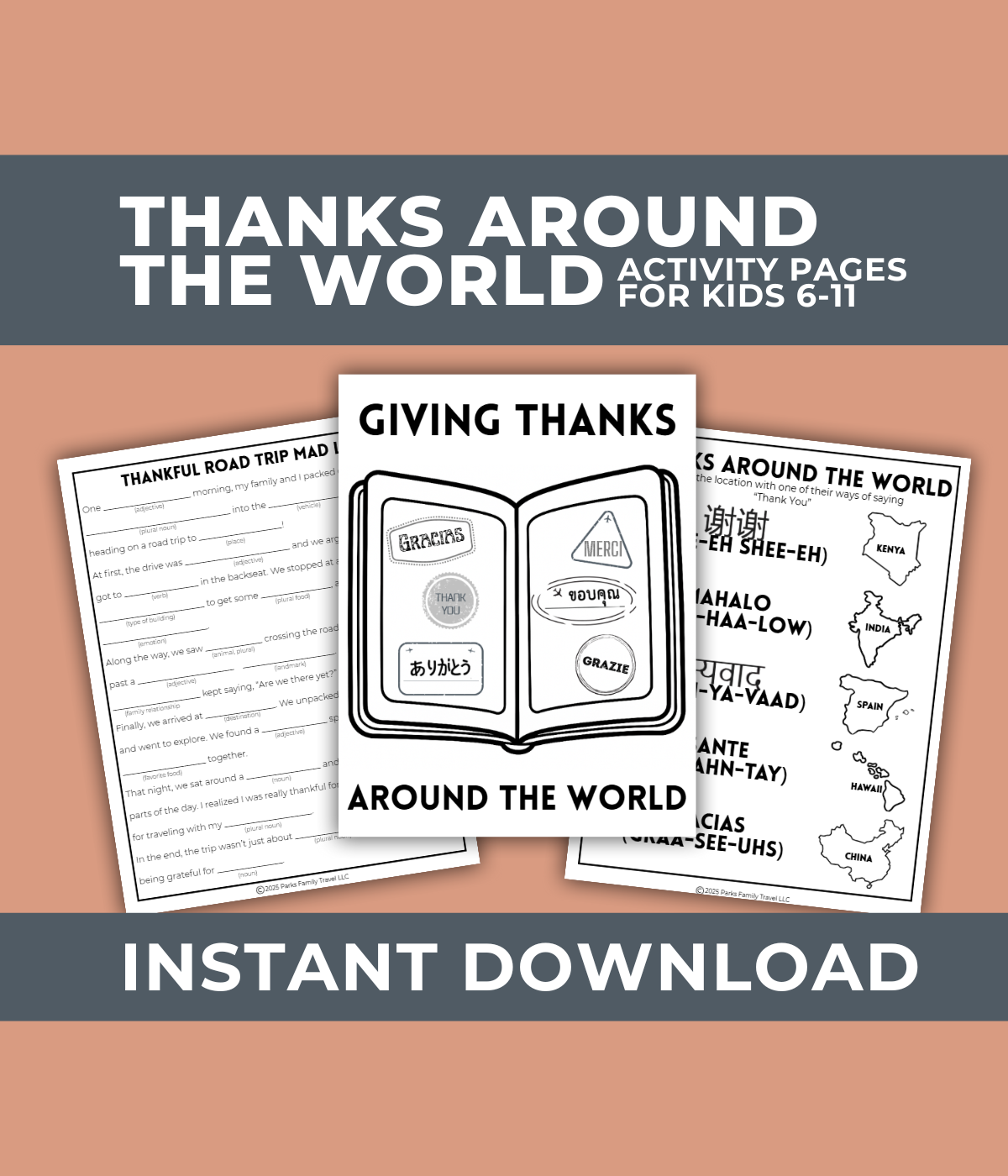 - Thankful Road Trip Mad Lib: A silly story activity that helps kids reflect on what they’re grateful for while traveling.