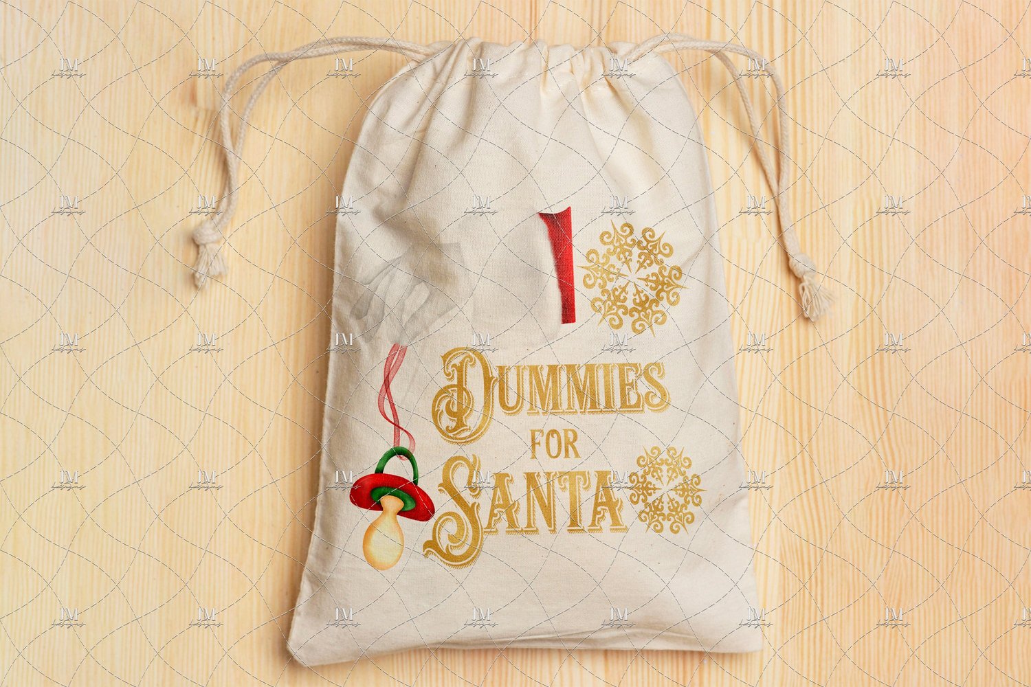 Perfect for mini tote bags so little ones can leave their dummies for Santa to collect! This design has been hand drawn by myself, complete with metallic gold effect lettering and accents to make your product pop. If you have any questions please feel free to message me!