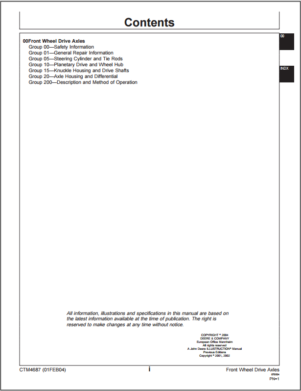 2004 John Deere Front Wheel Drive Axles AS And MS Series Component Technical Manual Part No. CTM4687