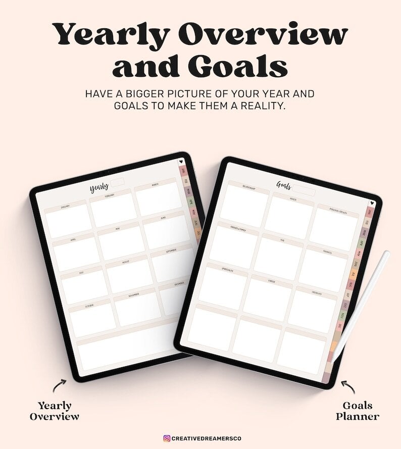 Our DigitalPlanner empowers you to set and track your goals effectively. Whether it's personal or professional, our goal planning features help you stay focused, motivated, and on the path to success. Visualize your progress and celebrate your achievements along the way.
