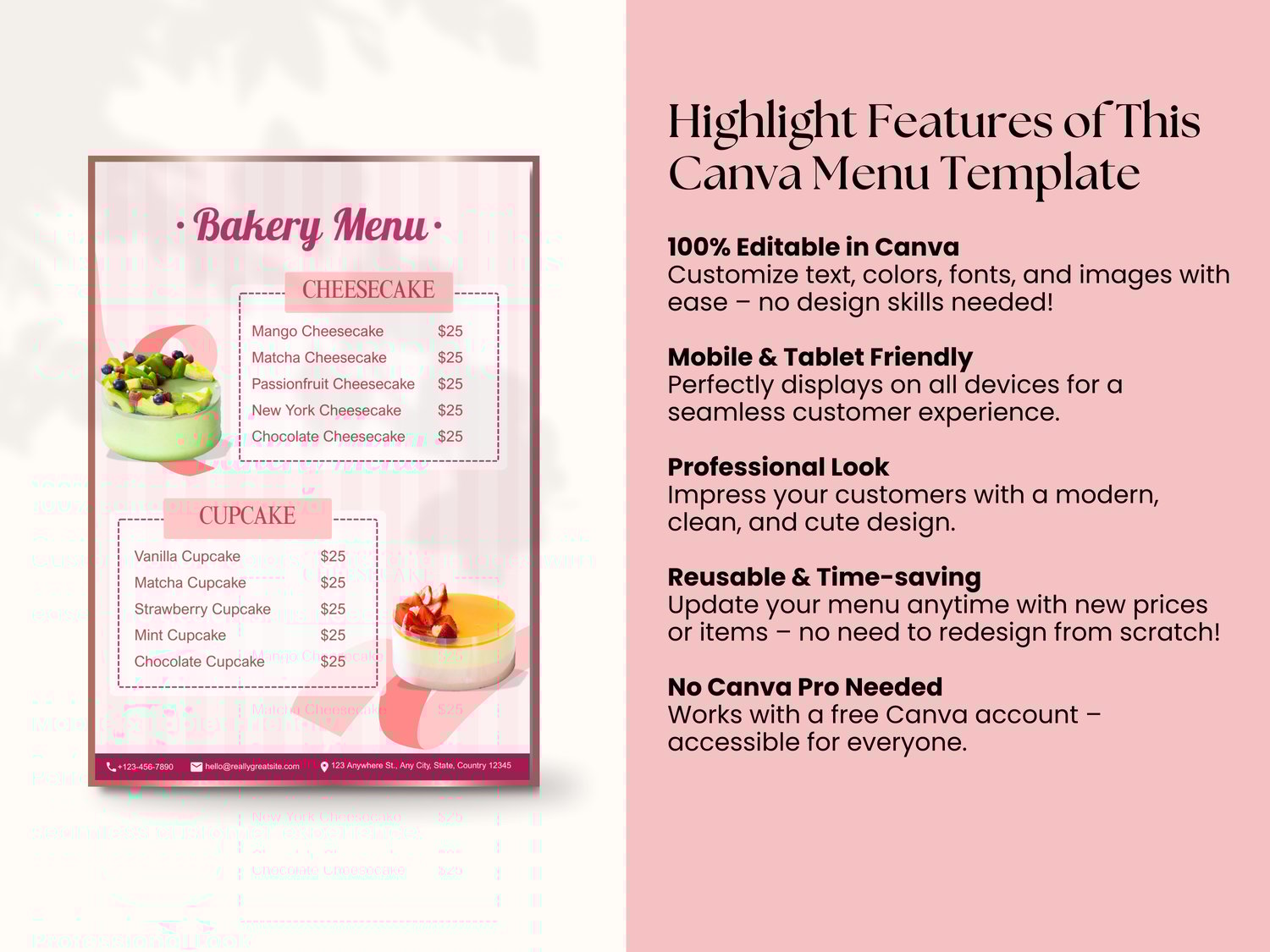 🎉 Stand out and boost your brand’s sweet appeal today! Click “Buy Now” to get instant access and start customizing your bakery menu.