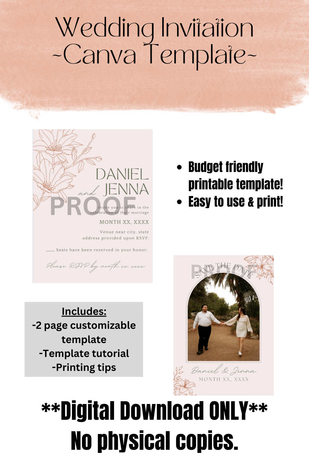 Wedding invitations shouldn't cost an arm and a leg, the wedding does that itself. These wedding invitations are especially perfect if you want to assign seats to your guests or keep the venue private until they RSVP. Use this template to easily create a save the date/wedding invitation and print it directly in Canva (or download and print it elsewhere)!