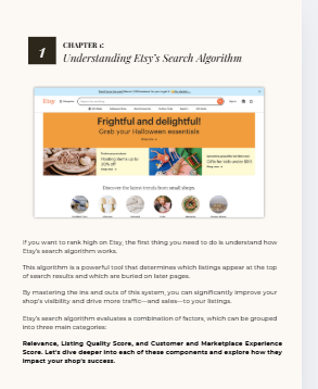 Inside this ebook: ✅ How Etsy’s search algorithm really works ✅ Keyword strategies for titles, tags, and descriptions ✅ Listing quality score tips to boost visibility ✅ Customer experience hacks that improve ranking ✅ Real-world examples and actionable steps