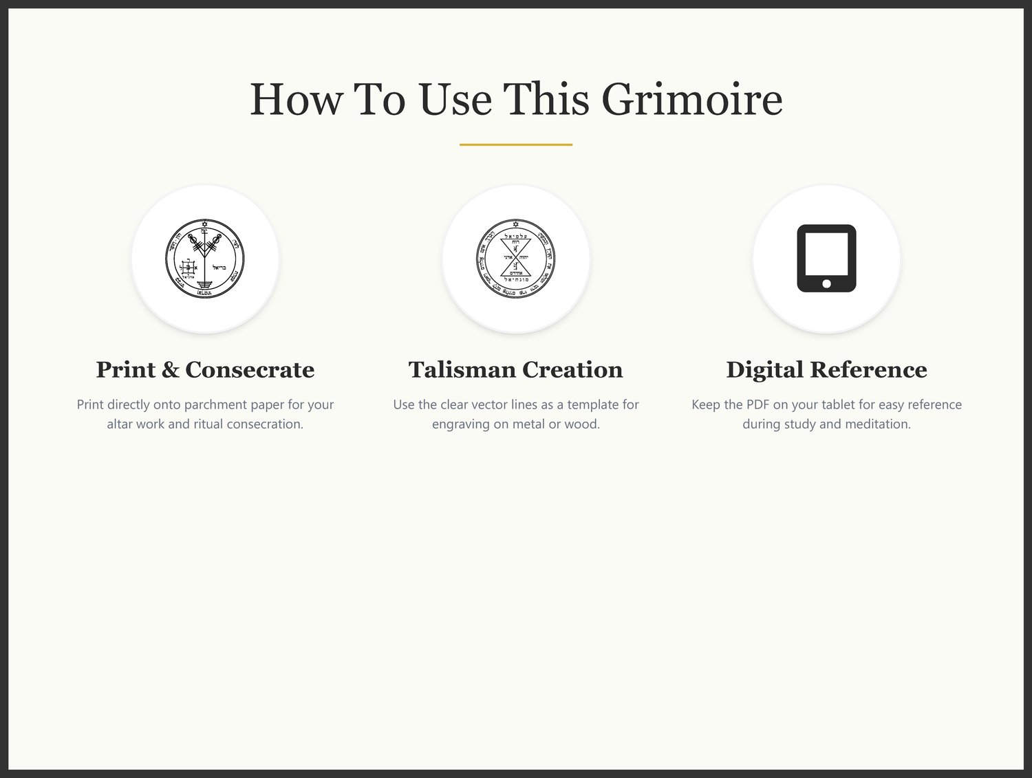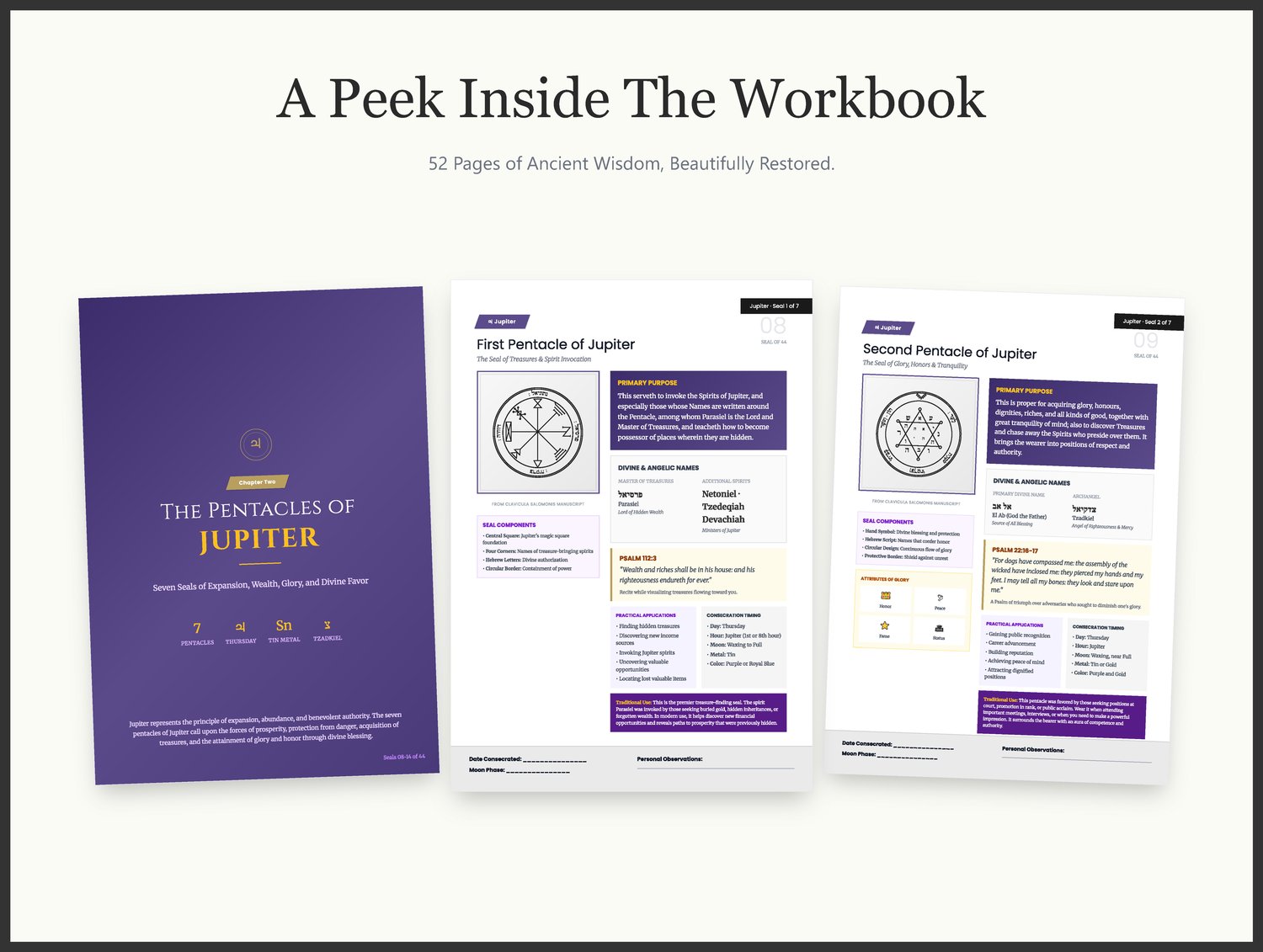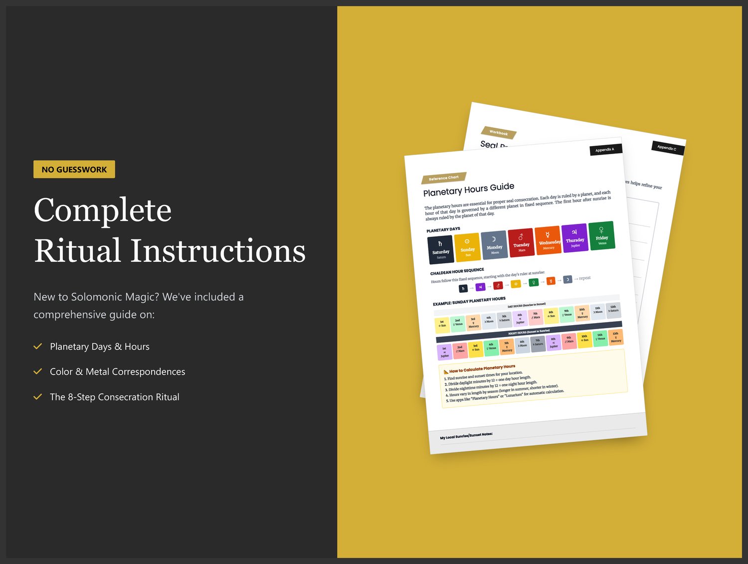 - Instructional Guide: Includes a dedicated "Course Fundamentals" section teaching you the 8-Step Consecration Ritual, planetary timing, and required metals.