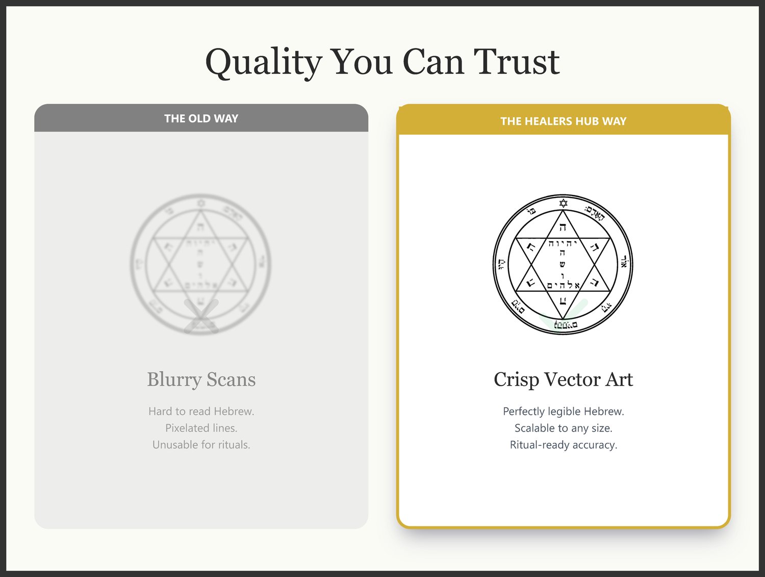 - Ritual Ready: Each page acts as a standalone worksheet featuring the Seal, the Hebrew Divine Names, the Angelic Ruler, and the specific Psalm required for activation.