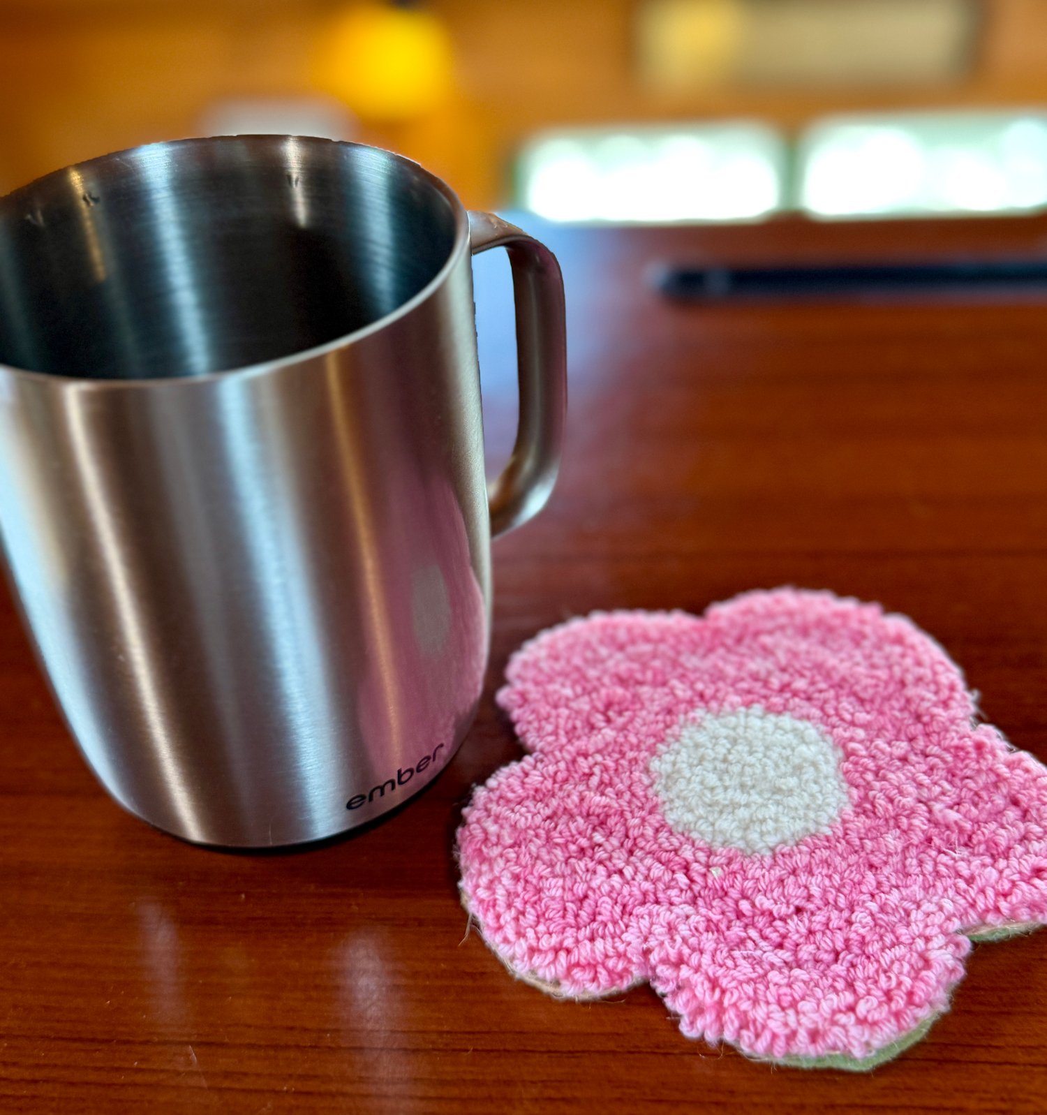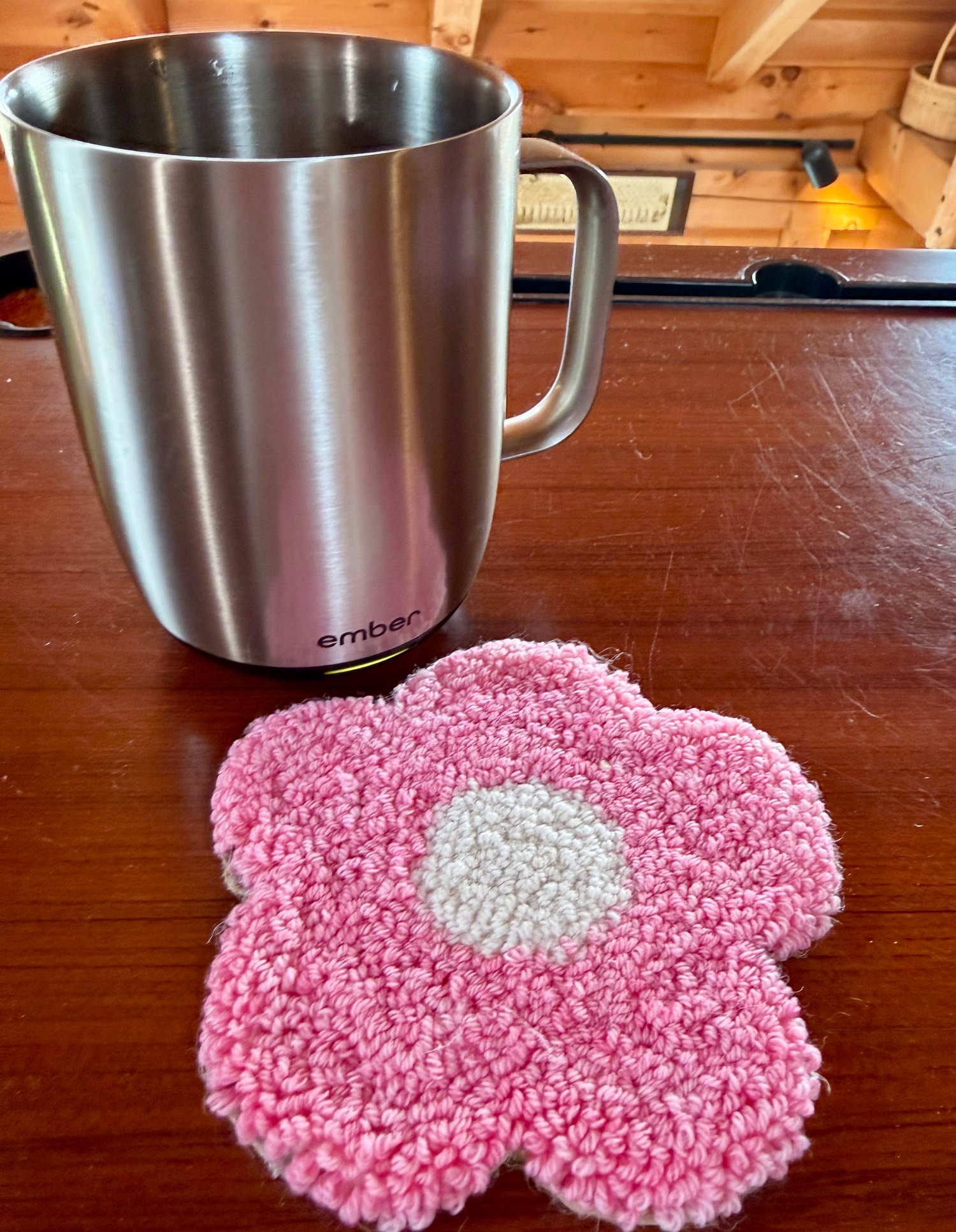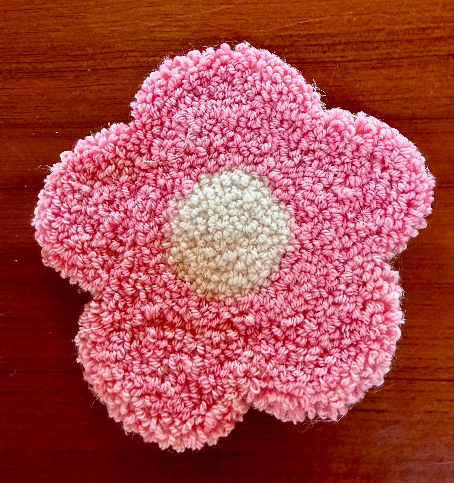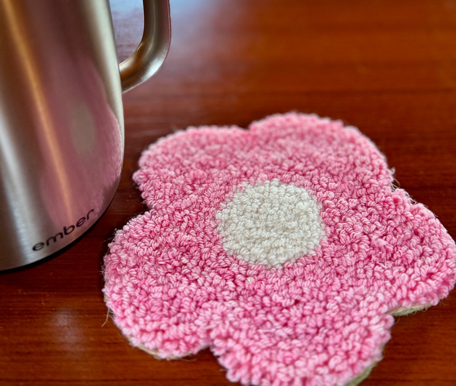 Hand Tufted Flower-Shaped Wool Coaster: Pink