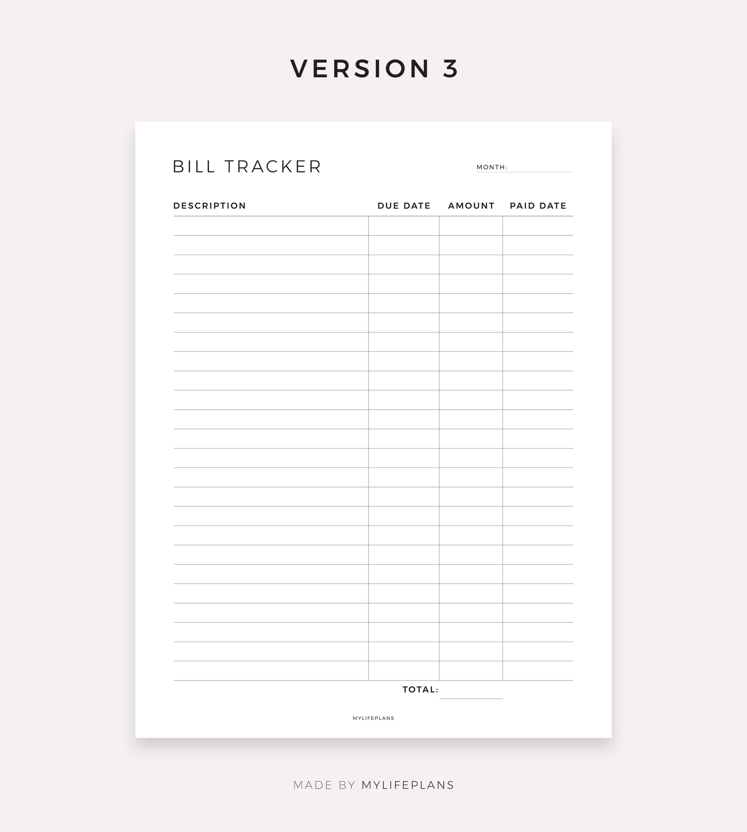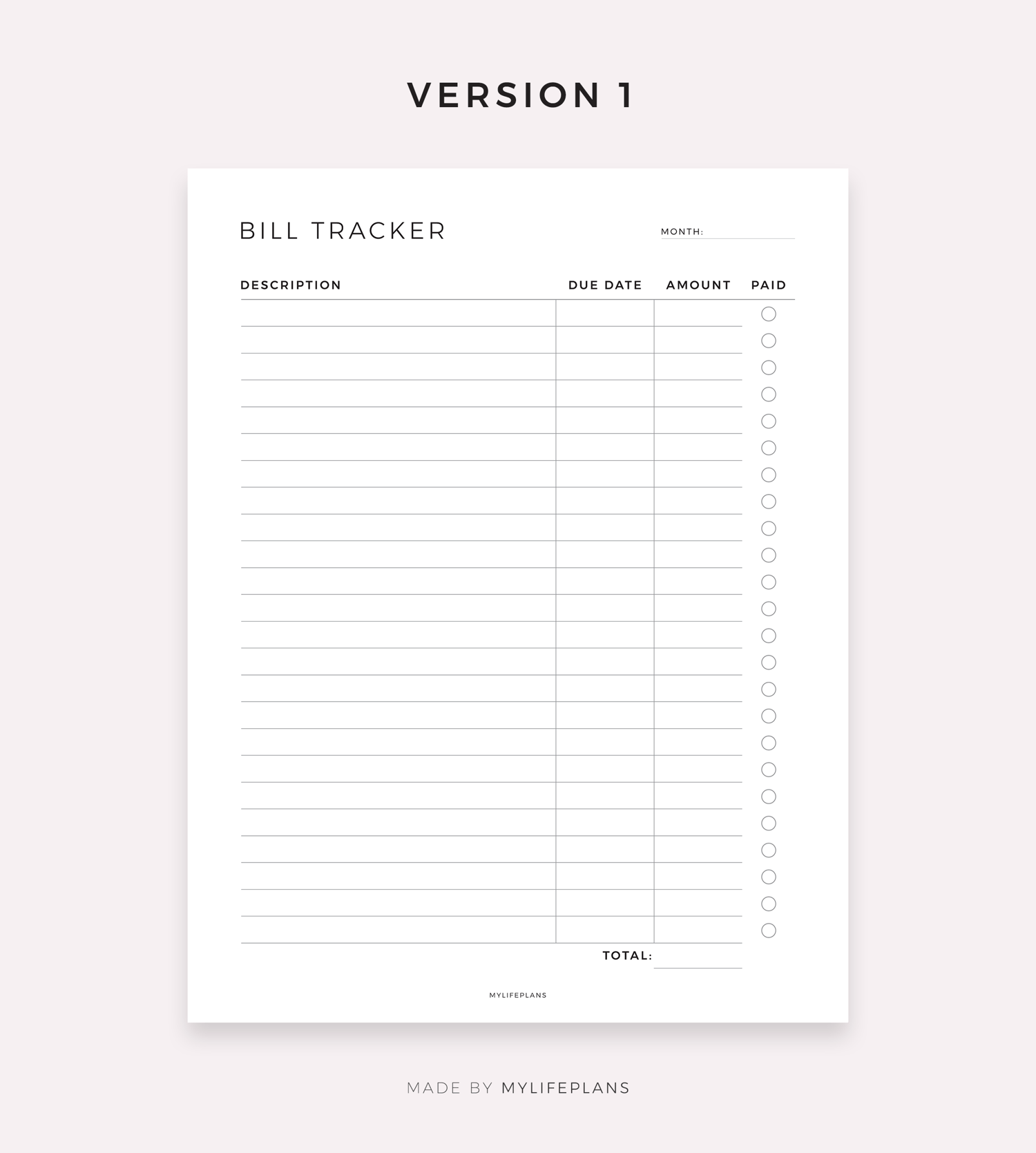 Digital Monthly Bill Tracker Template for Goodnotes, Notability, Ipad