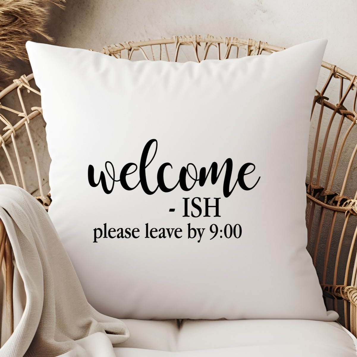 Welcome-ish Please Leave By 9 Funny Sarcastic Decorative Throw Pillow Cover 16