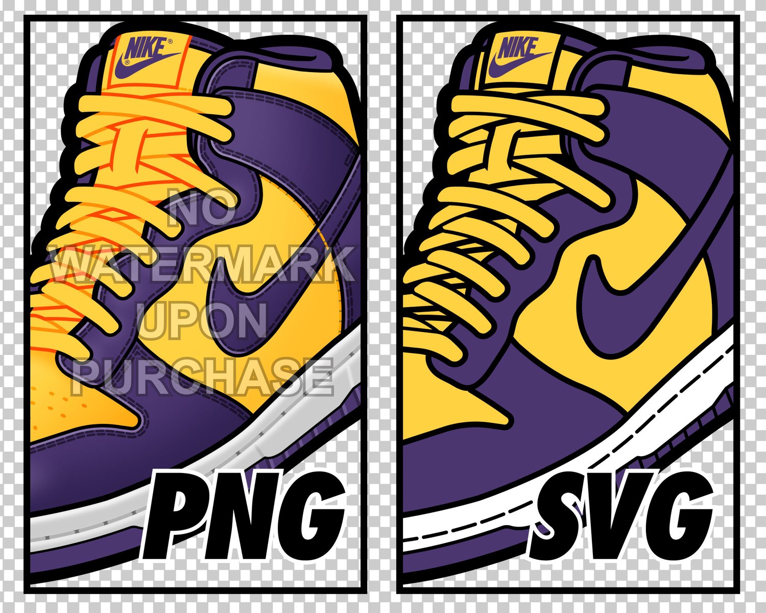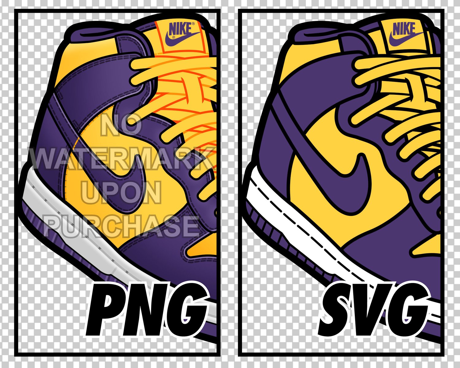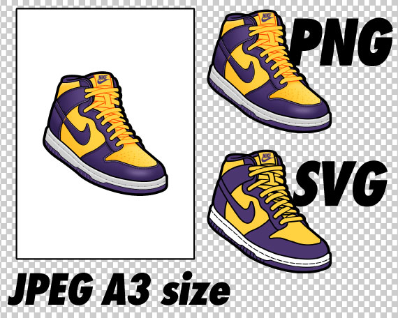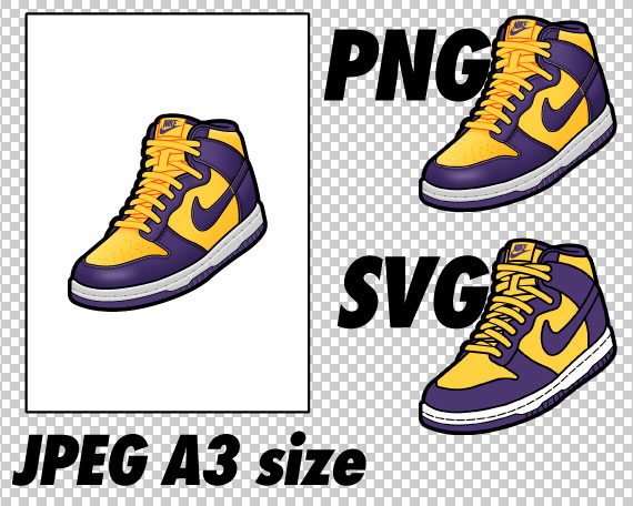 Dunk High Lakers JPEG PNG SVG right & left shoe bundle