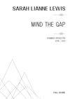 The impetus for 'mind the gap' started from a series of field recordings I took around the London underground system in January 2017 whilst travelling back and forth for residencies in the city. I had been interested for a while in recreating more electronic, mechanical sounds with live instruments, rather than utilising live or taped electronics in my work. ‘mind the gap’ is an energetic and noisy piece, exploring two simple themes within the music; that of the rapidly ascending scale, and the contrasting quiet mechanical ‘hum’ of the Underground trains.The work was commissioned by UPROAR ensemble, and premiered by UPROAR on 26 October 2021 at Chapter Arts Centre, Cardiff, UK.