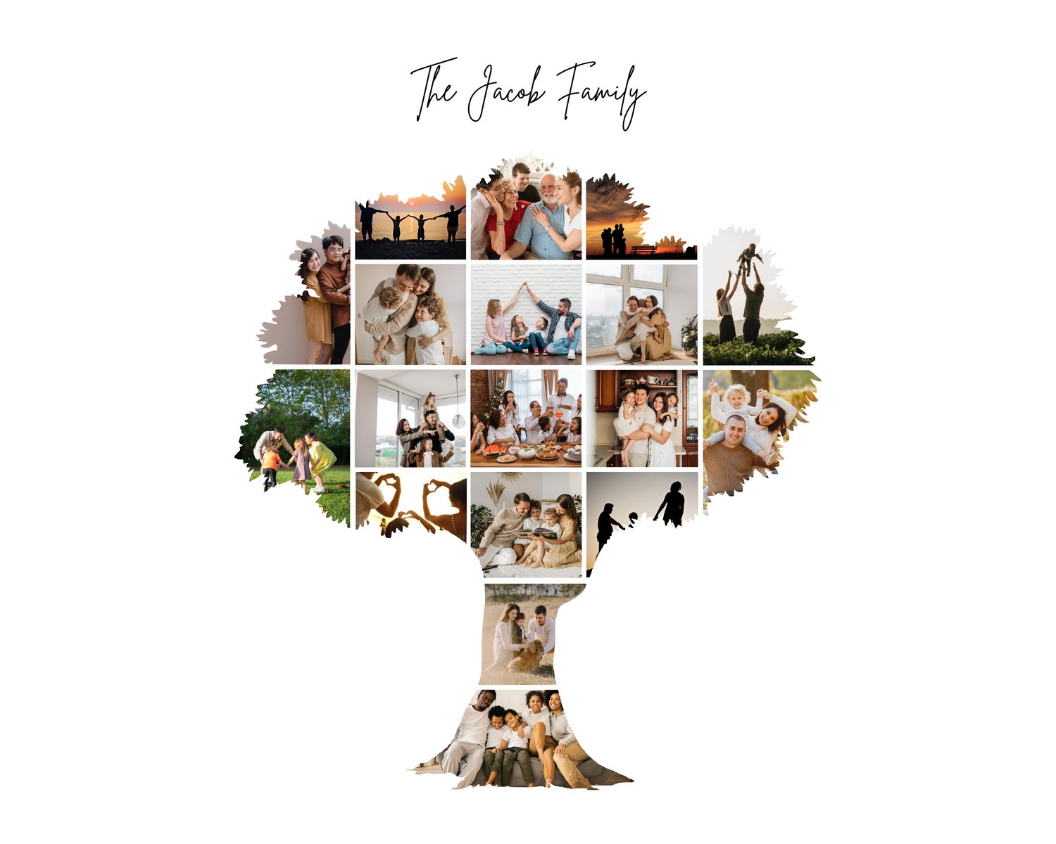 Celebrate your family heritage with this beautiful Family Tree Photo Collage – a perfect blend of memories and legacy. This digital product allows you to create a personalized, heartfelt display of your family's generations in a stylish, modern design.