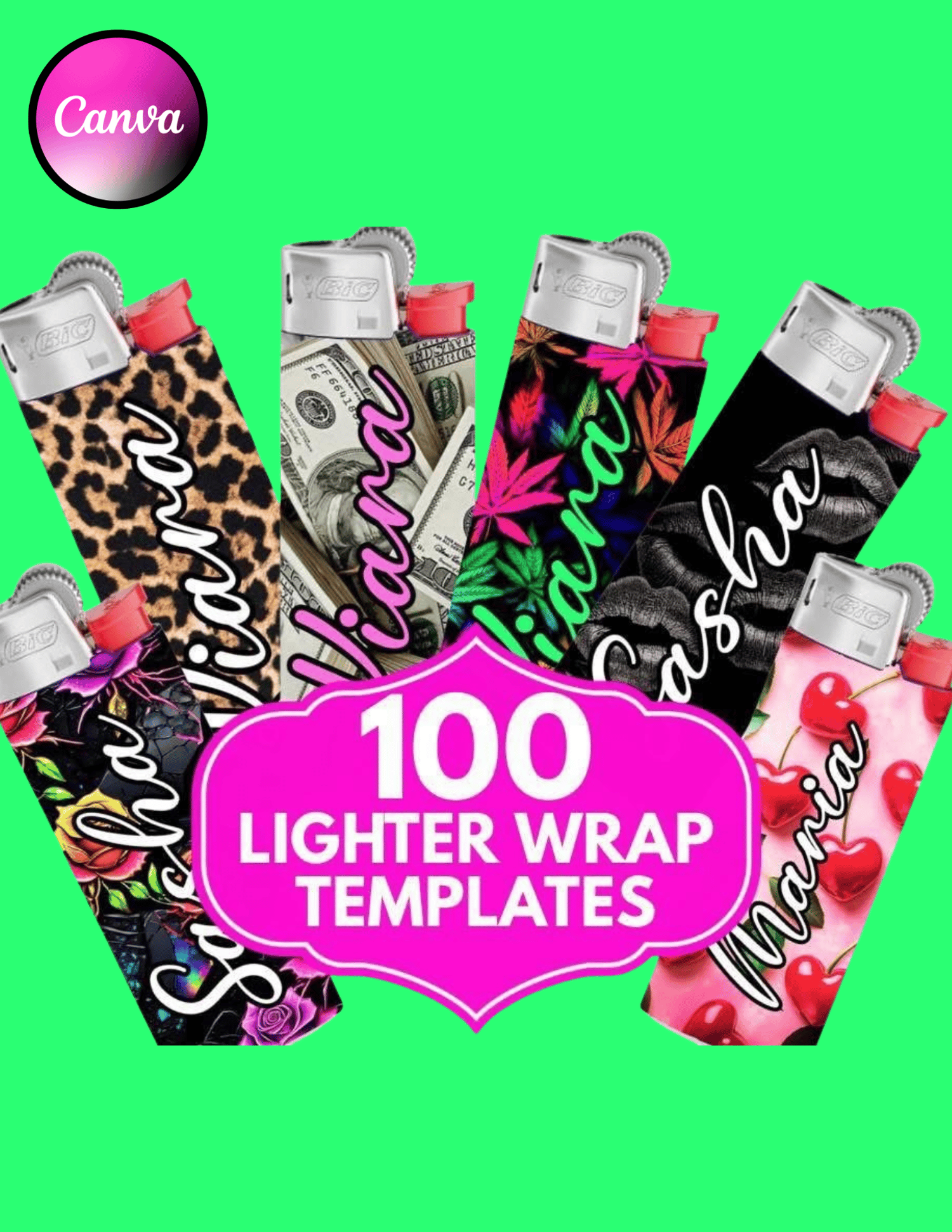 Make your designs light up the vibe with this massive bundle of 100 Editable Lighter Wrap Templates perfect for birthdays, events, branding, small business merch, and more! Sized to fit standard lighters, these wraps are fully editable in Canva Pro so you can easily add a name, phrase, graphics, or keep the original designs as-is.