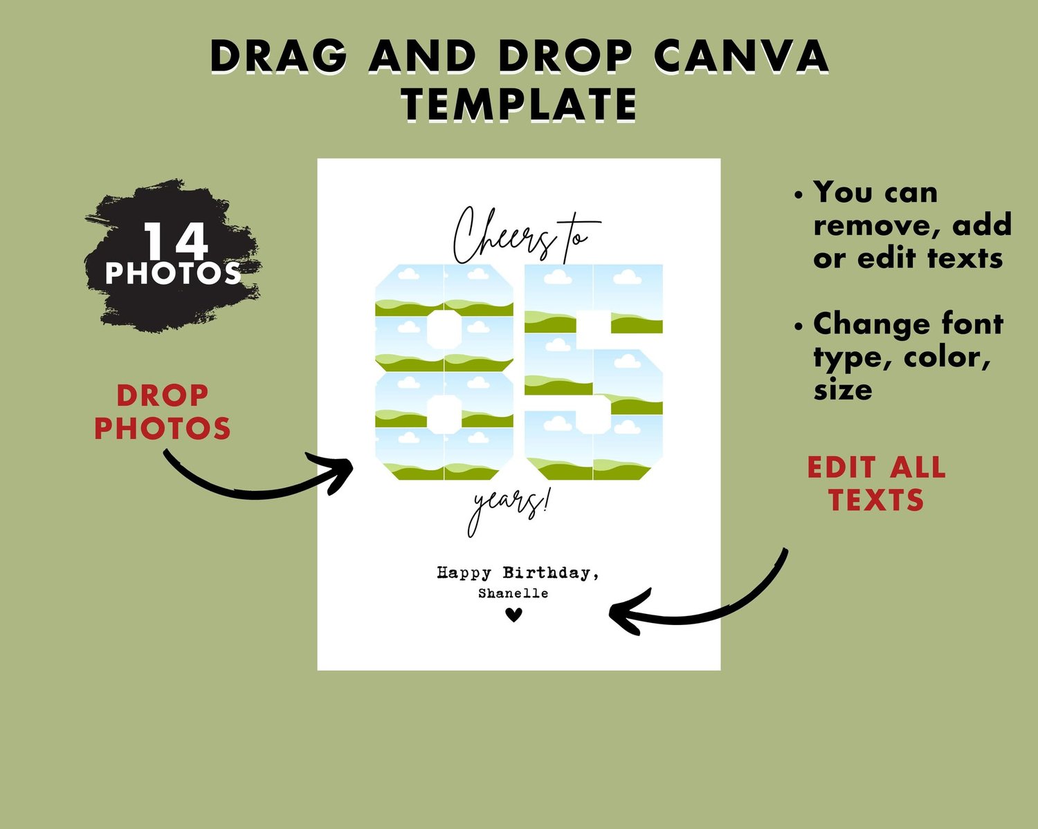 DIGITAL 85th Birthday Anniversary Photo collage Template, 85 year gift for Grandmother, Present for Grandfather, Gift for him her