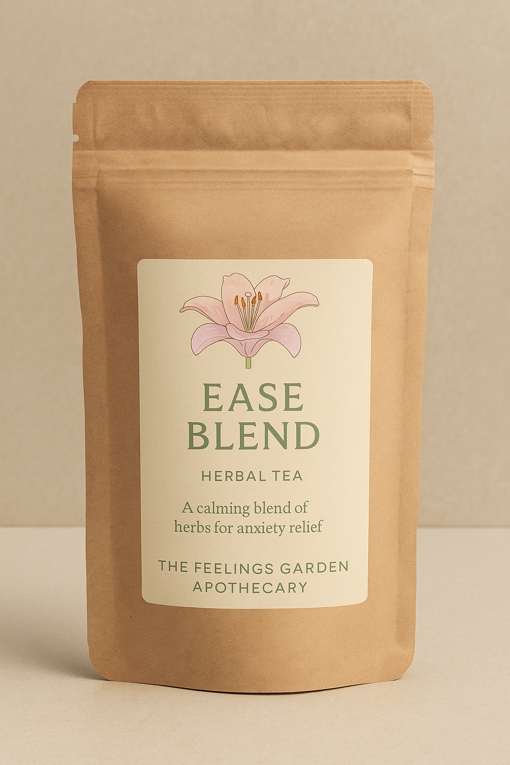 Ease Blend is a calming herbal tea crafted to soothe the nervous system, melt tension from the body, and bring you back into your breath. This blend was hand-blended with intention, sound, and gentle energy to support emotional regulation, mental clarity, and softening the edges of a stressful day.
