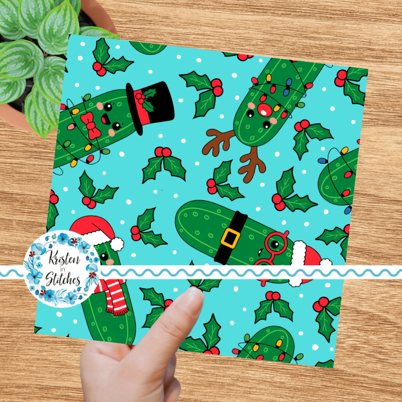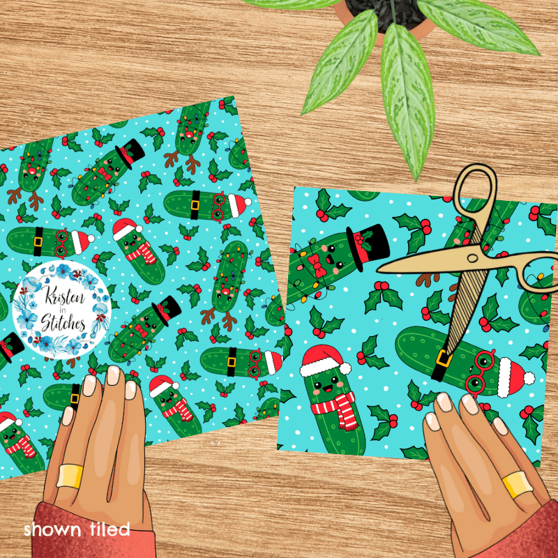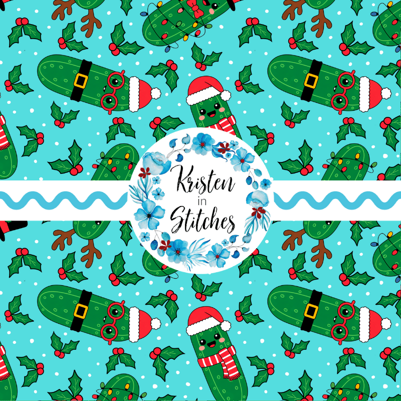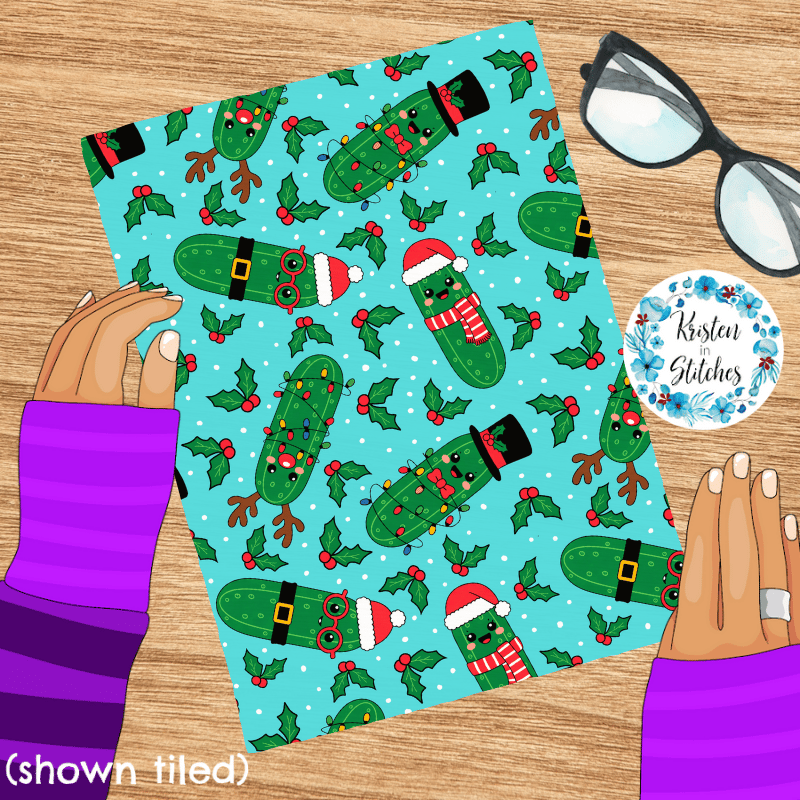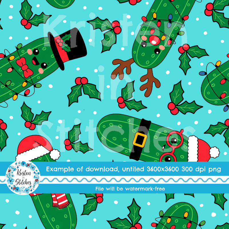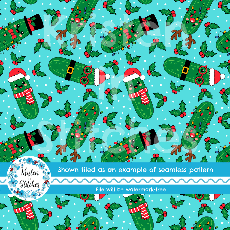 Christmas Pickles Seamless Pattern Santa Claus Reindeer Snowman Elf