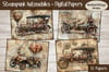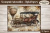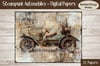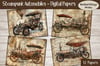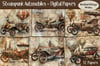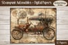 The 12 automobiles bring the Victorian era to any steampunk paper project.