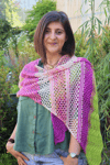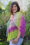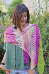 This shawl is inspired by friendship and community. At yarn festivals, and especially at “Knit with Friends”, the most meaningful moments are the ones we share with our friends. The genuine smiles, the hugs, the happy photos, all the playfulness and big doses of laughs and silliness. Choosing special yarns and colors with your friends makes festivals meaningful. So, when the organizers invited me to design this pattern, I instantly knew I had to pour all these emotions into a shawl. So this year, more than a simple pattern, I have a challenge for you!