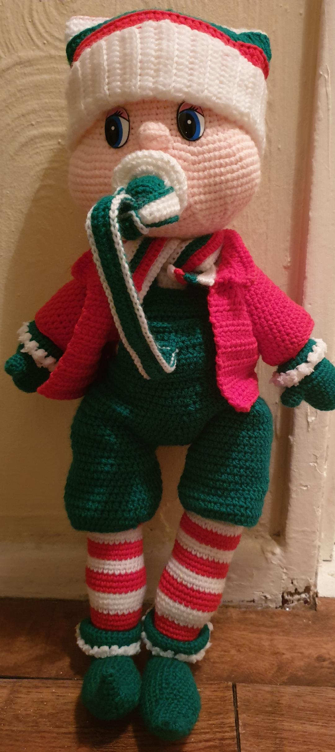 We would like to introduce to you 'Ethan The Elf Baby', he's worked in DK (8PLY), is worked in basic stitches and rounds, is written in U.S terminology and stands at approximately 18" in height.
