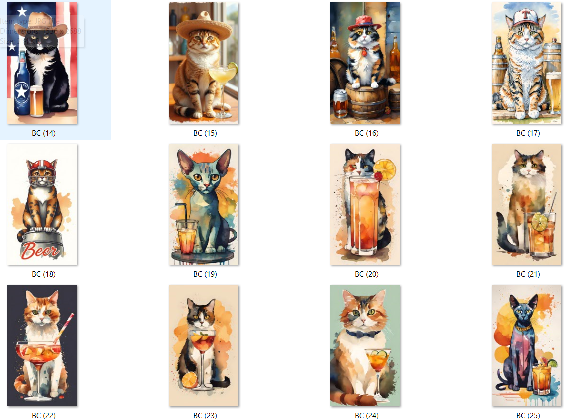 Don't miss out on this purr-fect opportunity to add some fizz and fur to your digital library! These images are the cat's whiskers when it comes to unique, shareable content. Whether you're a social media influencer, a marketing professional, or just someone who appreciates the hilarious juxtaposition of felines and fancy drinks, this collection is for you!