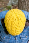 The daffodil was always a favorite of my mom’s and the color was just perfect for this hat. The cable/moss stitch texture reminded me of the cabled Aran sweaters of my childhood and teen years. I knew that they were destined to be combined into this hat.