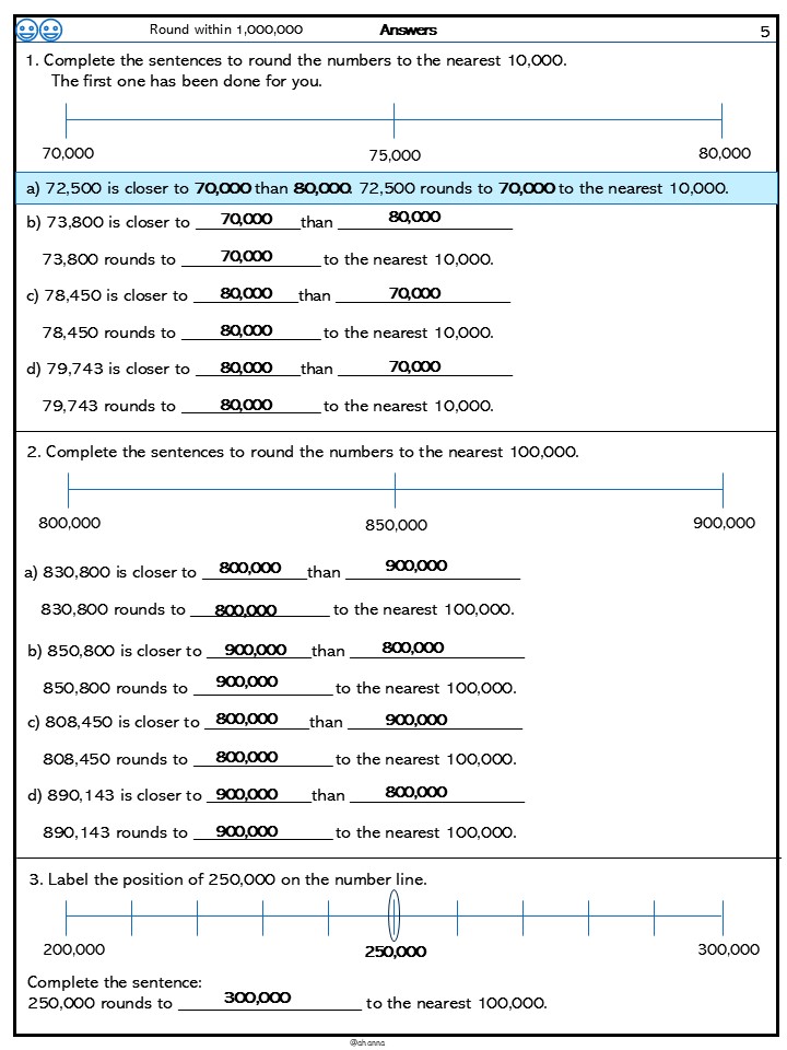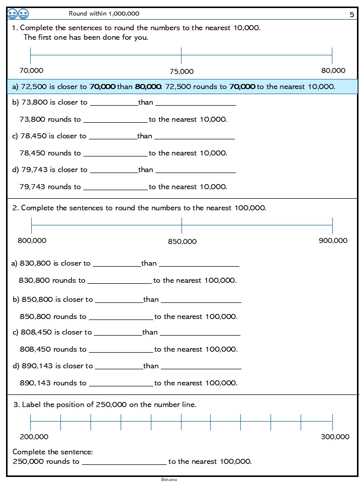 practise rounding to the nearest 100,000 before looking at mixed questions.