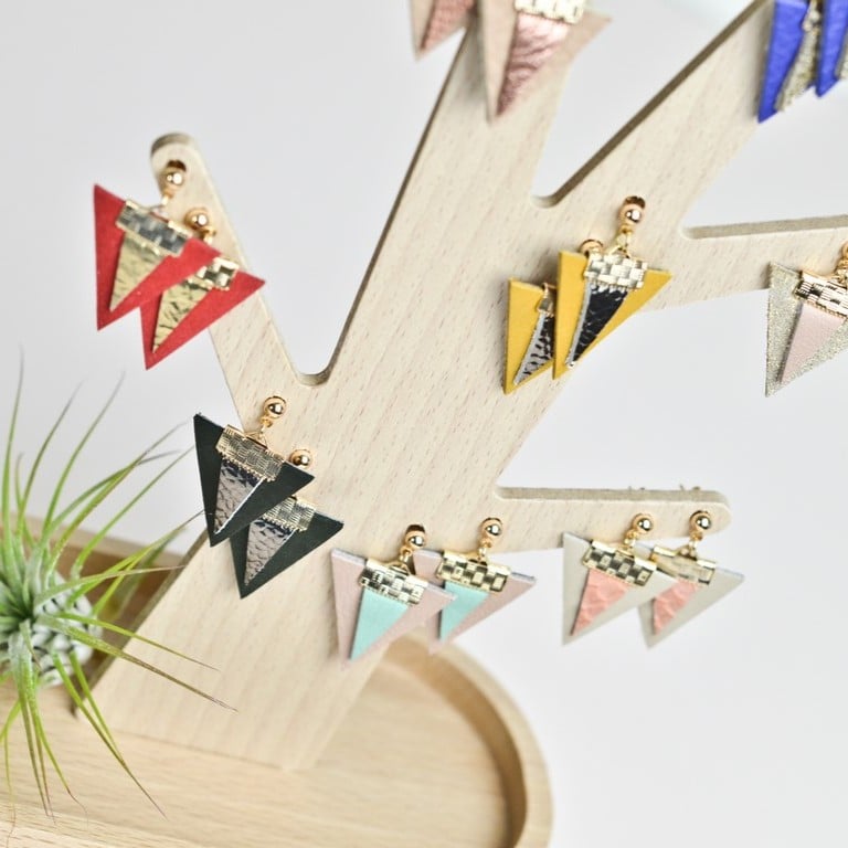 Boucles d'oreilles en cuir et laiton recouvert d'or fin (couche de 1 micron)