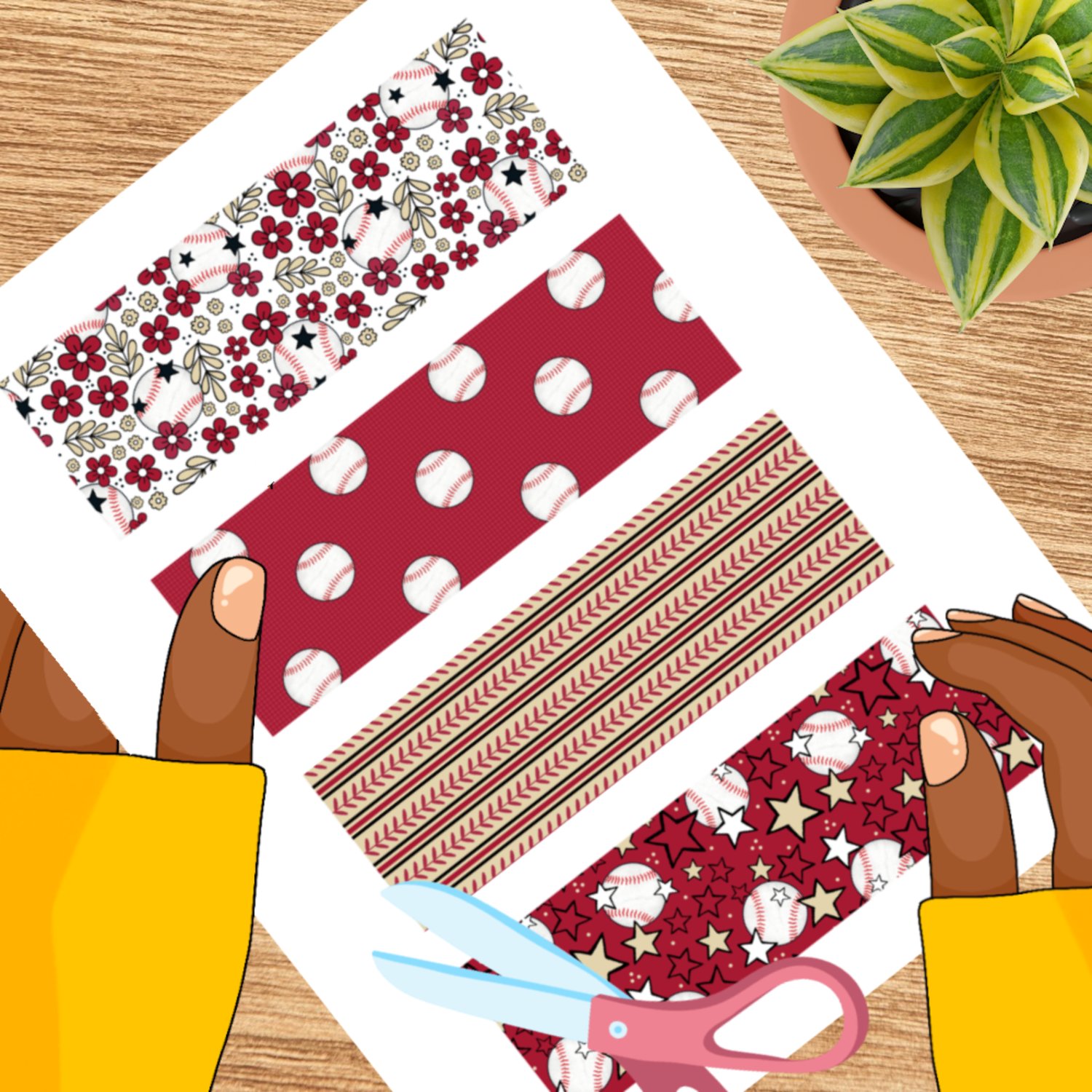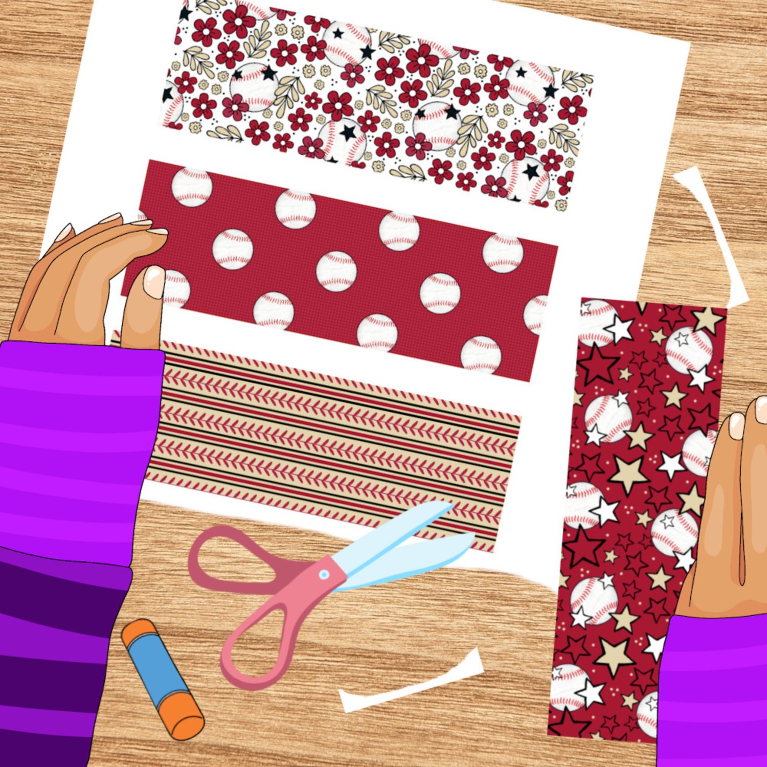Baseball Printable Bookmarks Sheet 2x6 Print and Cut PDF PNG Craft Prizes Activities, Arizona Diamondbacks Red and Tan